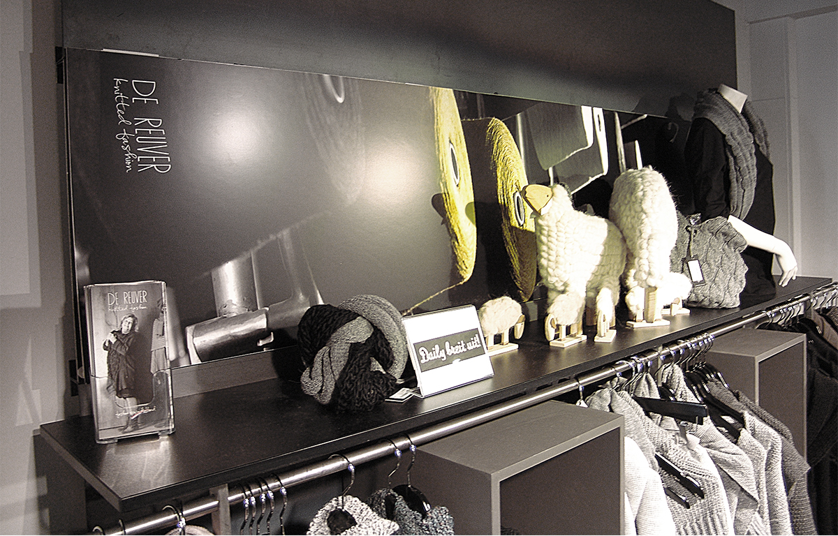 portfolio achterwand private label Om haar nieuwe private label met eco garens in haar winkel duidelijk vindbaar te maken, verzocht Daily women’s wear lekker in vorm om een sfeervolle achterwand te ontwikkelen. pos bord ontwerp pos bord uitvoering
