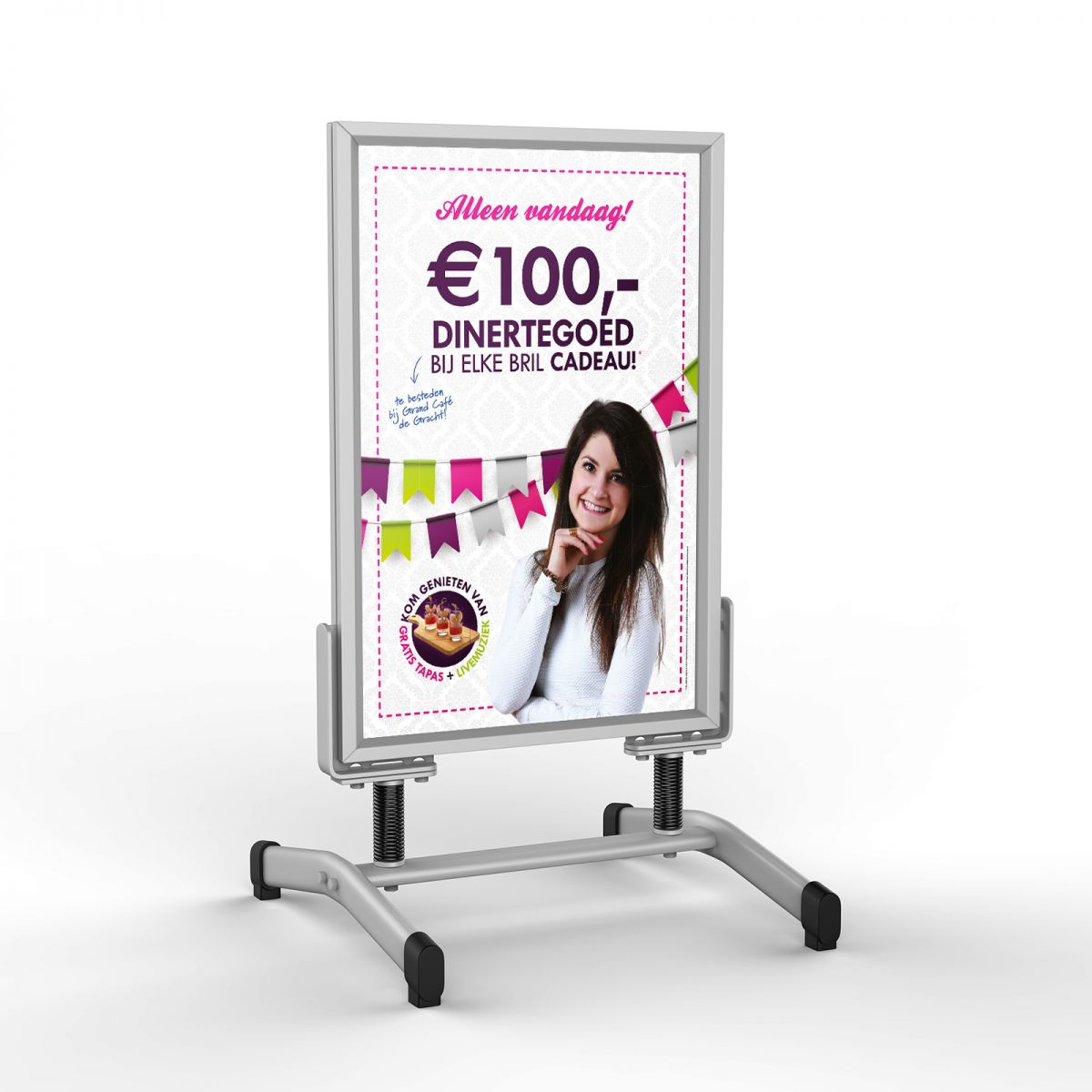 lekker in vorm zorgde voor alle campagne-items, waaronder een strooiflyer, een dubbelzijdige banner, stoepbordposter, exposure op Facebook en een dinercheque.