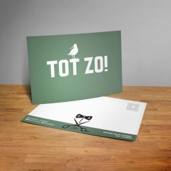 Bas stuurt af en toe graag een kaartje om mensen welkom te heten, bijvoorbeeld bij de geboorte van nieuwe, stoere mannen. Daarvoor mochten we bij lekker in vorm dit ansichtkaartje in huisstijl ontwerpen, dat Bas eenvoudig zelf kan voorzien van een persoonlijke, handgeschreven boodschap.