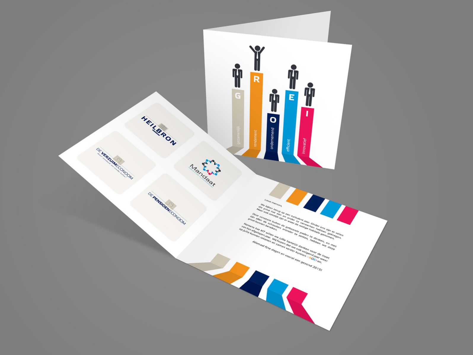 portfolio beeldconcept ‘groei’ Om intern alle pijlers van Heilbron op een leuke manier inzichtelijk te maken voor medewerkers ontwierpen we bij lekker in vorm een beeld concept met het thema ‘groei’. kerstkaart intro powerpointpresentatie poster