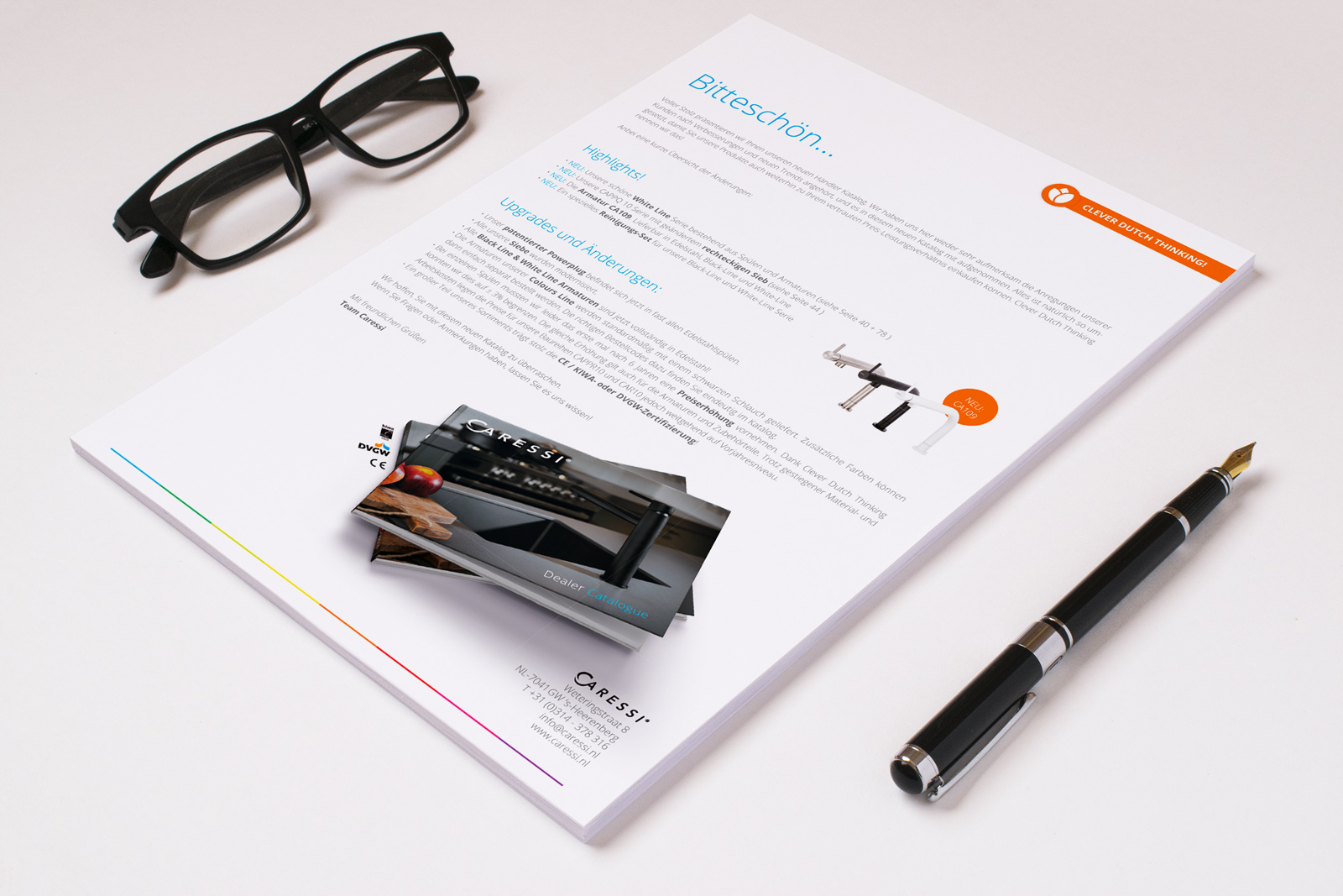 portfolio begeleidend schrijven De nieuwe catalogus van Caressi is klaar voor verzending naar klanten en prospects! Via een begeleidend schrijven kunnen de geadresseerden zich vast in hun eigen taal inlezen in de highlights. voorzijde Nederlands achterzijde voorzijde Duits
