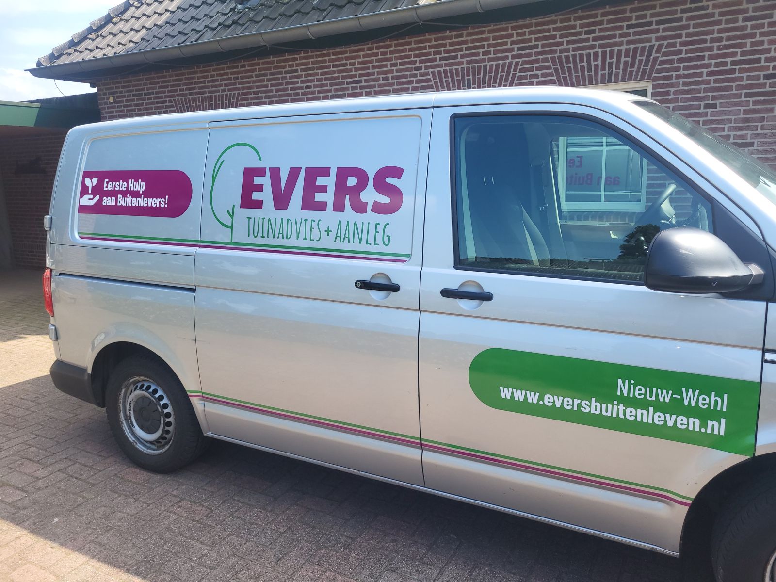 Heb jij Jeffrey al gespot met zijn nieuwe busbelettering in Wehl en omstreken? Want ook de Volkswagen Transporter van zijn hoveniersbedrijf Evers Buitenleven kon natuurlijk niet achterblijven in de restyling van de nieuwe huisstijl.