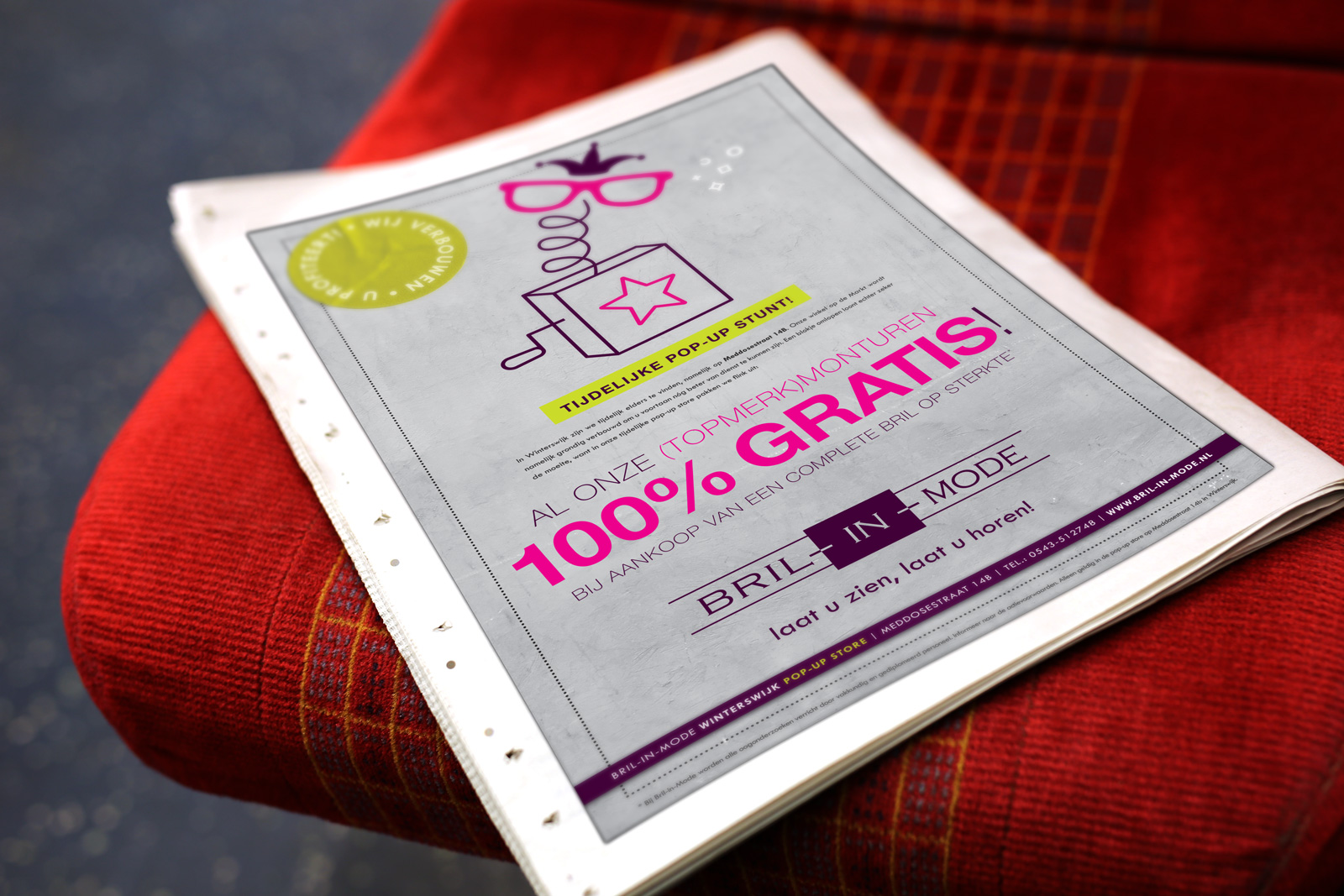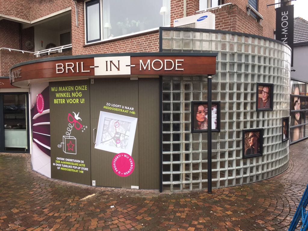 De winkel van Bril-in-Mode Winterswijk ondergaat een grondige verbouwing. Geen nood: bij een pop-up store dichtbij kun je als klant in de tussentijd gewoon terecht. Heel voordelig zelfs: alle (topmerk)monturen 100% gratis bij aankoop van een complete bril!