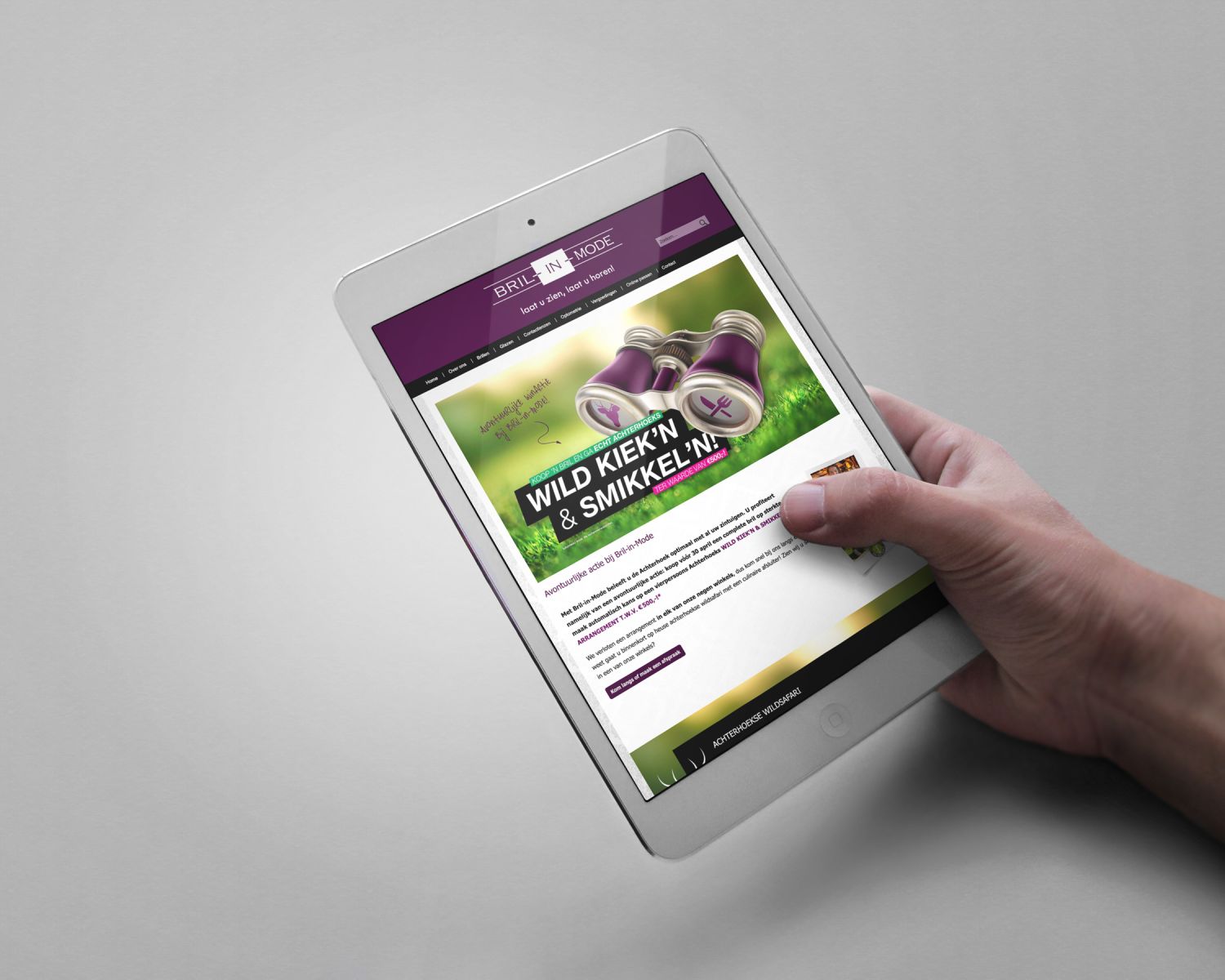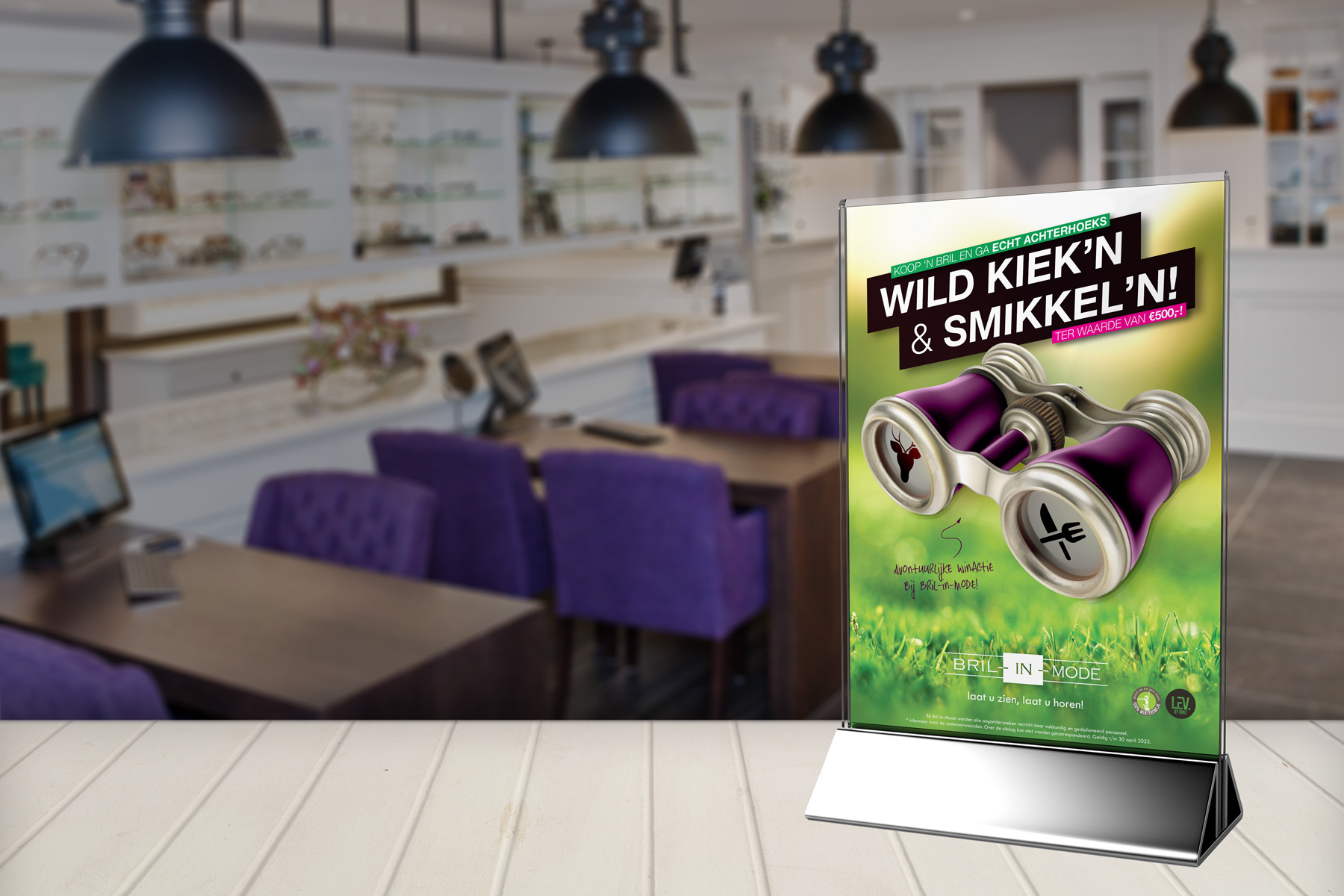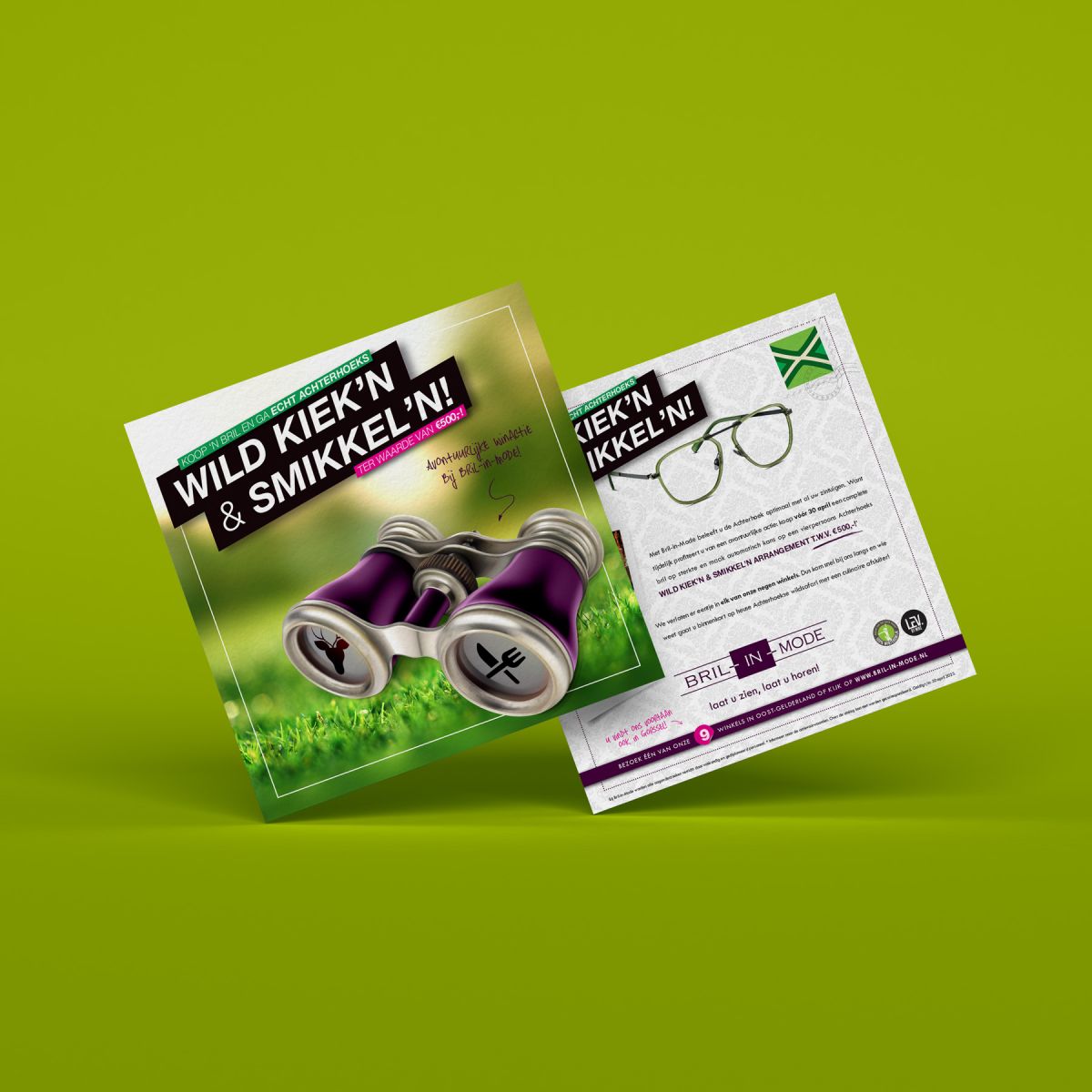 Met Bril-in-Mode beleef je de Achterhoek optimaal met al je zintuigen. Want momenteel profiteer je van een avontuurlijke actie: koop een complete bril op sterkte en maak automatisch kans op een vierpersoons Achterhoeks Wild Kiek’n en Smikkel’n arrangement t.w.v. €500,-!