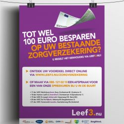 In samenwerking met ouderenorganisatie Leef3.nu organiseert Heilbron speciale zorgspreekuren voor senioren, prettig in de buurt. Via posters en flyers wordt iedereen geattendeerd op deze spreekuren en op het voordeel van een zorgcollectief. Bij lekker in vorm ontwierpen we deze items in herkenbare Leef3.nu huisstijl.
