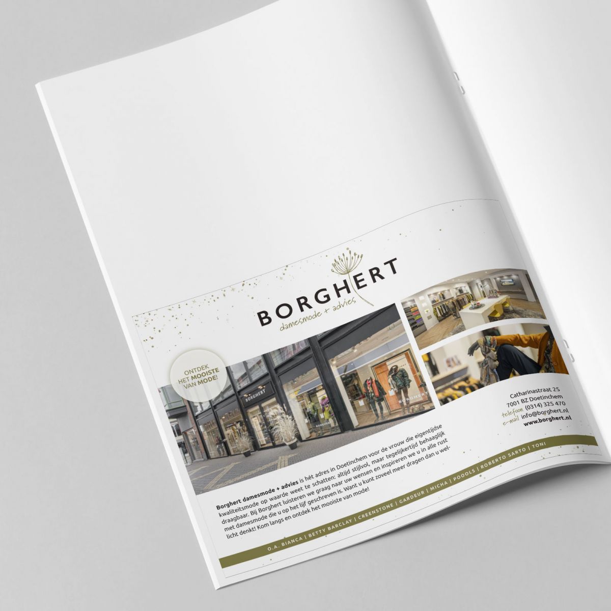 portfolio corporate advertenties Om de naamsbekendheid van het nieuwe Borghert damesmode + advies een boost te geven, hebben we bij lekker in vorm een lijn corporate advertenties in diverse formaten ontworpen. algemene naw advertentie corporate advertentie liggend corporate advertentie staand