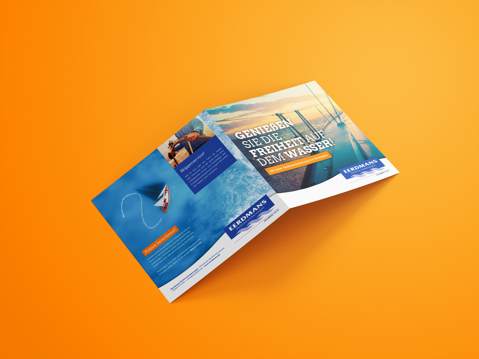 Eerdmans mag zich met maar liefst 50 jaar ervaring met recht specialist noemen op het gebied van verzekeringen voor zowel kleine sloepjes als grote zeiljachten. Bij lekker in vorm mochten we een folder ontwerpen met alle voordelen van een Eerdmans jachtverzekering overzichtelijk op een rijtje. De folder is zowel in het Nederlands als in het Duits gepubliceerd.