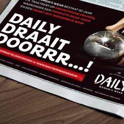 Daily women’s wear bestaat 30 jaar en dat mag gevierd worden! Na je aankoop in de winkel mag je daarom aan het Rad van Avontuur draaien, en maak je kans op leuke prijzen! lekker in vorm verzorgde hiervoor de ontwerpen en teksten, in de vorm van een advertentie, persberichten, posters, flyer en niet te vergeten het Rad van Avontuur zelf. Drrrrrrrraaien maar!
