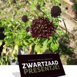 Tijdens de “Awakenings” V.I.P dagen ging je als bezoeker bij Daily Women’s Wear naar huis met een passend cadeau: Het Zwartzaad Presentje, bestaande uit een zakje met zaden van de Scabiosa Atropurpurea ‘Black Knight’ en een waardebon t.w.v. 10% korting voor wanneer de bloem in bloei staat. lekker in vorm dacht mee over dit concept en mocht daarna vanzelfsprekend het artwork verzorgen. Oh, en natuurlijk hadden we ook braaf een exemplaar in de achtertuin!