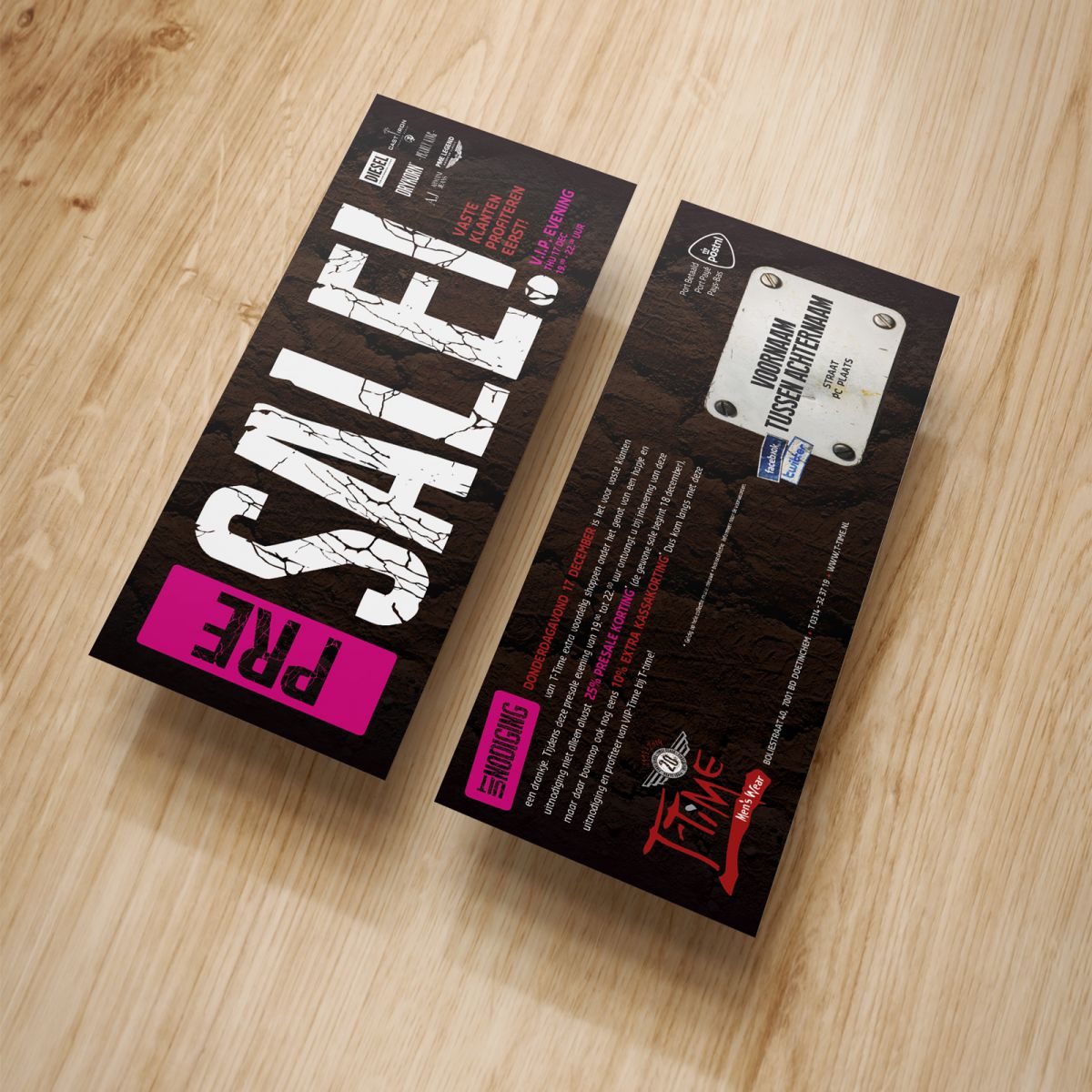 De T-Time sale gaat weer beginnen! Vaste klanten kunnen als eerste profiteren van de pré-sale. Daarna wordt heel winkelend Doetinchem ervan op de hoogte gebracht door middel van een stoepbordposter. lekker in vorm voorzag bestaande ontwerpen van nieuwe kleuren en nieuwe teksten.
