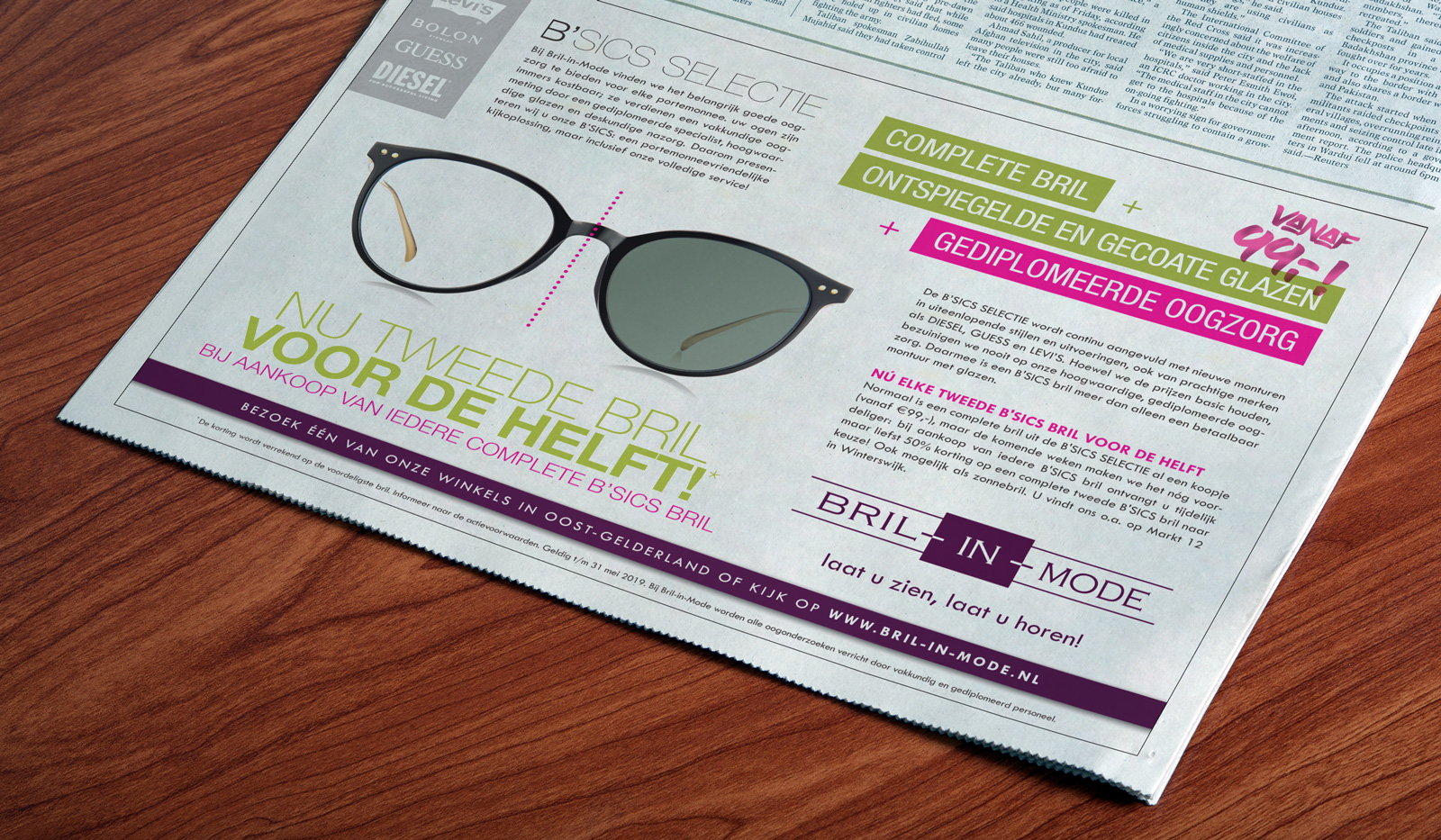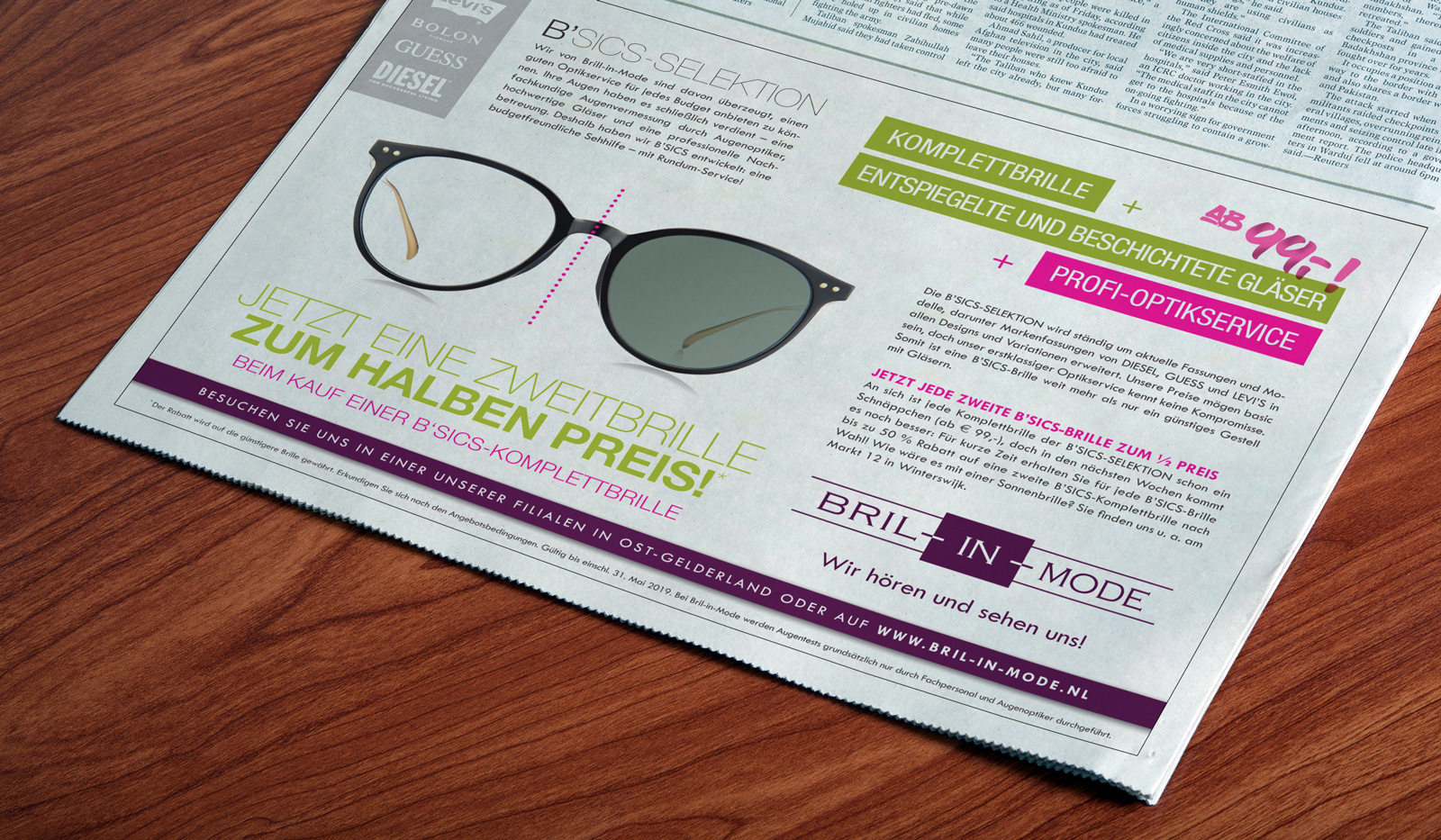 De B’SICS collectie van Bril-in-Mode is ook populair in Duitsland. Daarom mochten we bij lekker in vorm deze duitstalige advertentie ontwerpen voor de uitgave 100% Winterswijk. Naast de vormgeving verzorgden we ook de vertaling via een native speaker.