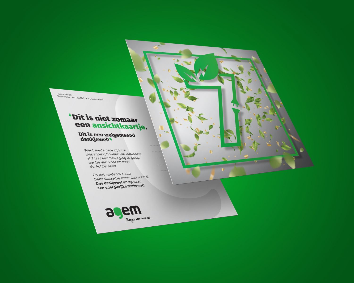 Agem houdt inmiddels al 7 jaar een beweging in gang: eentje van, voor en door de Achterhoek. Een mooie prestatie die je niet alleen bereikt. Vandaar dat we bij lekker in vorm deze felicitatiekaart mochten maken met een welgemeend dankjewel vanuit Agem voor alle betrokkenen.