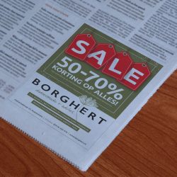 Tijdens de Final Sale bij Borghert damesmode + advies mogen de laatste kwaliteitsitems uit de oude collecties weg met 50% of soms wel 70% korting. Bij lekker in vorm mochten we er een aanvullende campagne voor extra attentiewaarde voor vormgeven, bestaande uit een een advertentie in de Doetinchemmer en diverse point of sale items in de winkel.