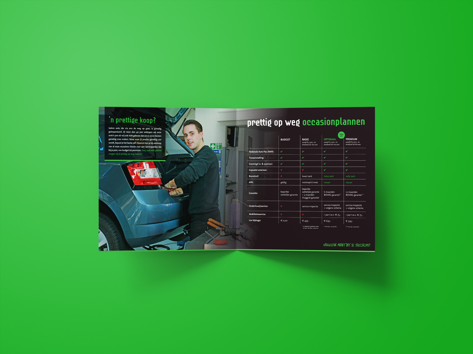 Bij lekker in vorm mochten we de bestaande folder opfrissen met nieuwe fotografie en aangescherpte teksten, die beter passen bij het merkverhaal van de Achterhoekse autodealer.