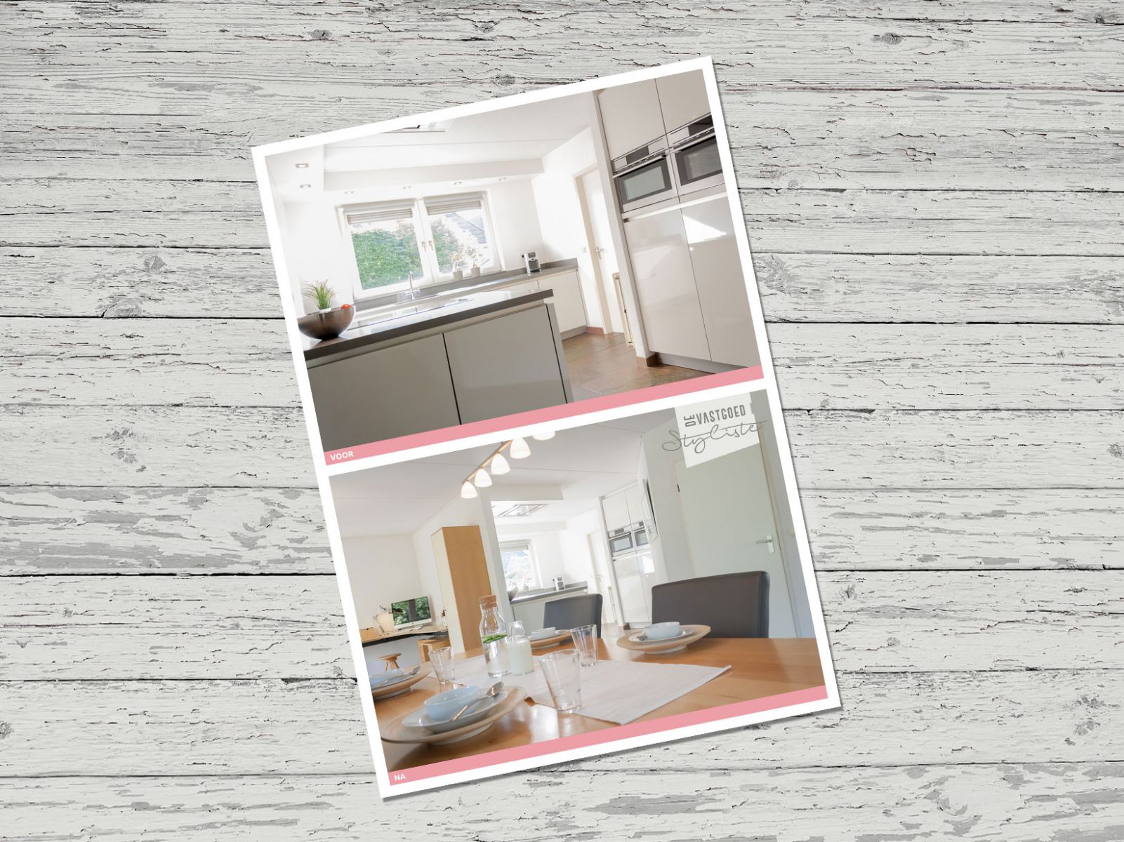 portfolio fotosjabloon Om makkelijk en stijlvol de voor- en nasituaties in beeld te kunnen brengen, ontwierp lekker in vorm een fotosjabloon voor De Vastgoedstyliste. voor/na sjabloon voor foto’s