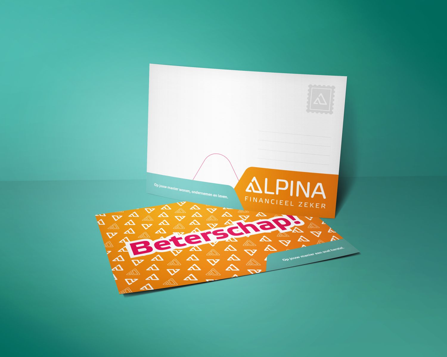 portfolio gelegenheidskaarten Om het medewerkers makkelijk te maken om attent en persoonlijk te zijn richting klanten en collega’s mochten we bij lekker in vorm deze set kaarten voor diverse gelegenheden ontwikkelen voor Alpina. ansichtkaart beterschap vouwkaart met envelop sterkte gelegenheidskaarten set