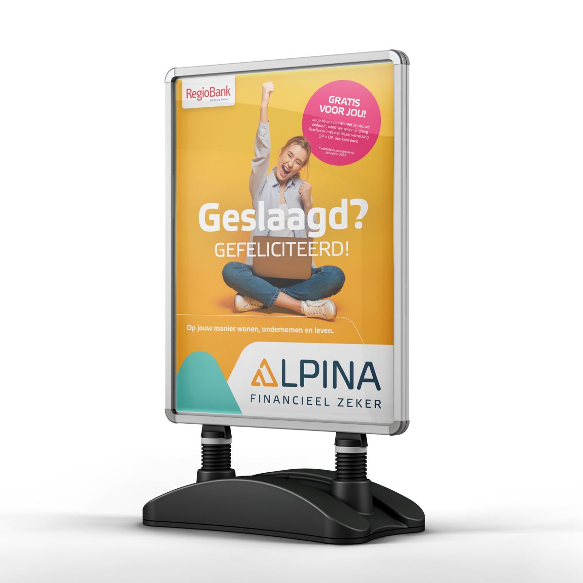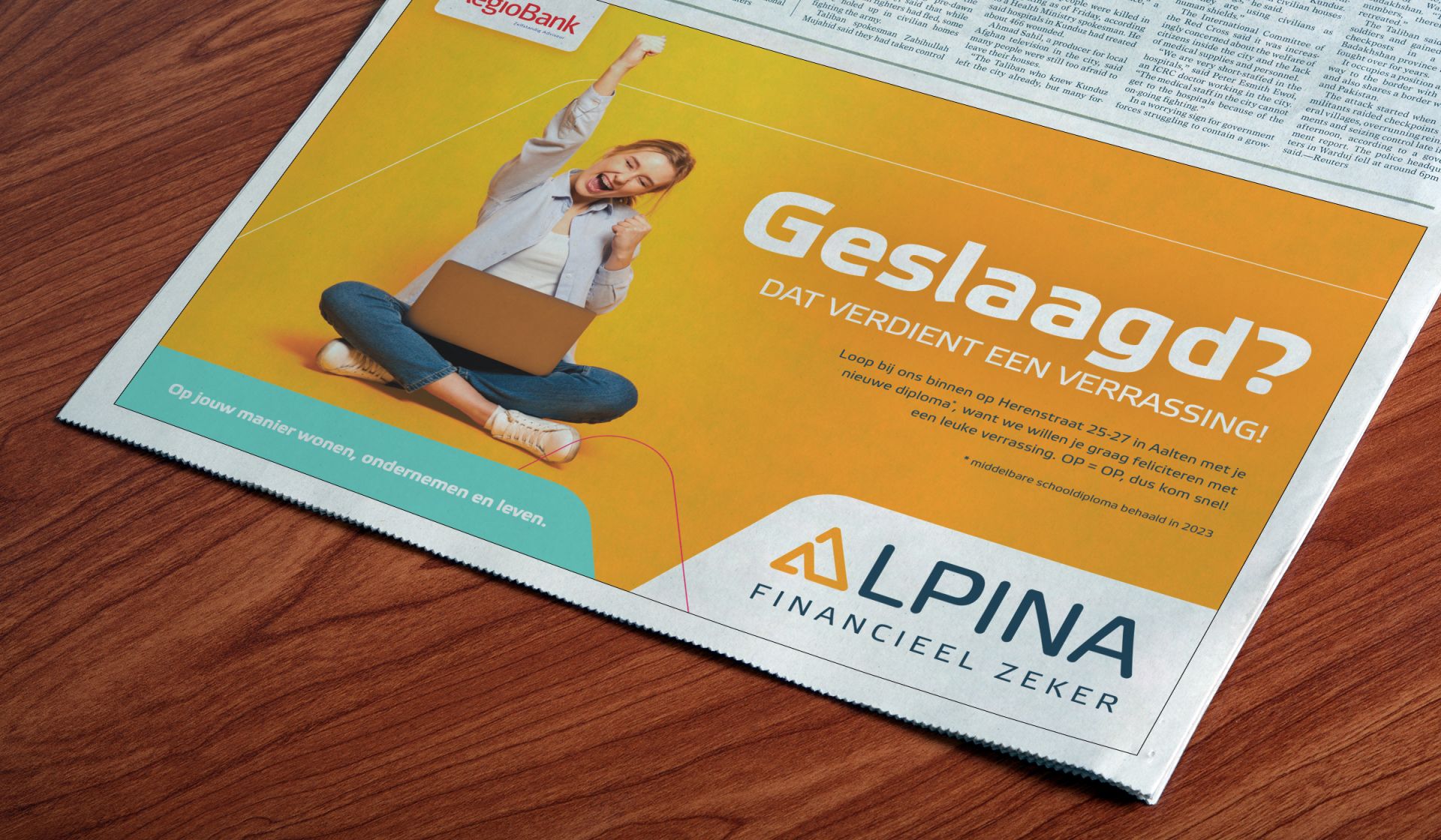 Je middelbareschooldiploma halen is een prestatie om trots op te zijn! Daarom trakteren diverse Alpina vestigingen met Regiobank-functie de geslaagden in hun omgeving op een leuke verrassing. Welke, daar mag iedere vestiging zelf een lokale invulling aan geven. Op veel plaatsen gaan de medewerkers zelfs letterlijk de wijk in om je als geslaagde persoonlijk te feliciteren en te trakteren!