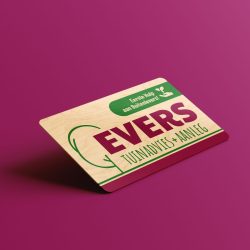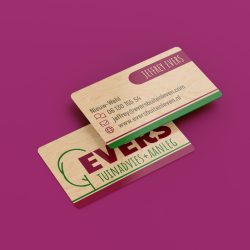 Voor hovenier Evers Buitenleven mochten we bij lekker in vorm deze houten visitekaartjes ontwerpen. Niet alleen een goede uitstraling, maar ook makkelijk uit te delen met vieze tuinvingers!