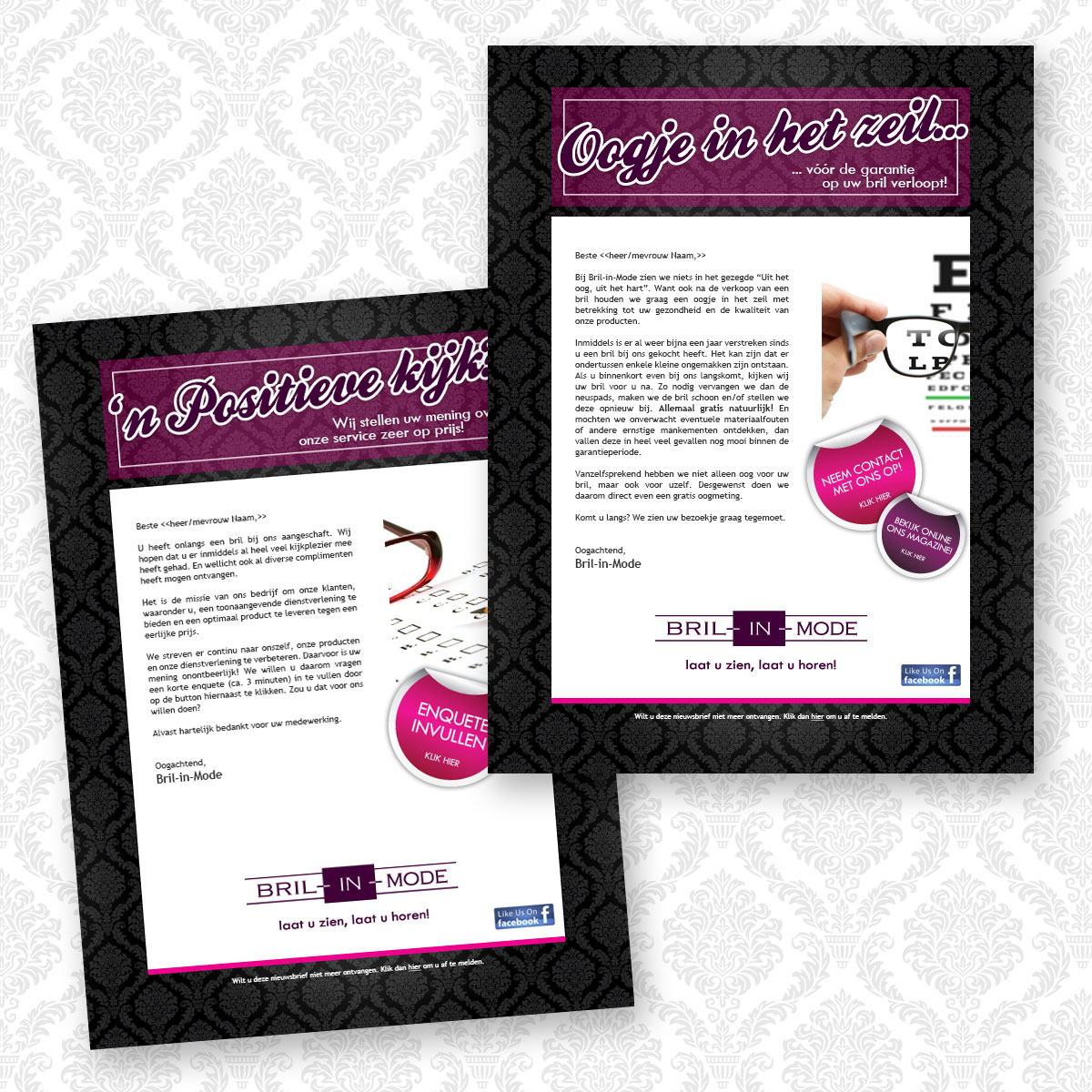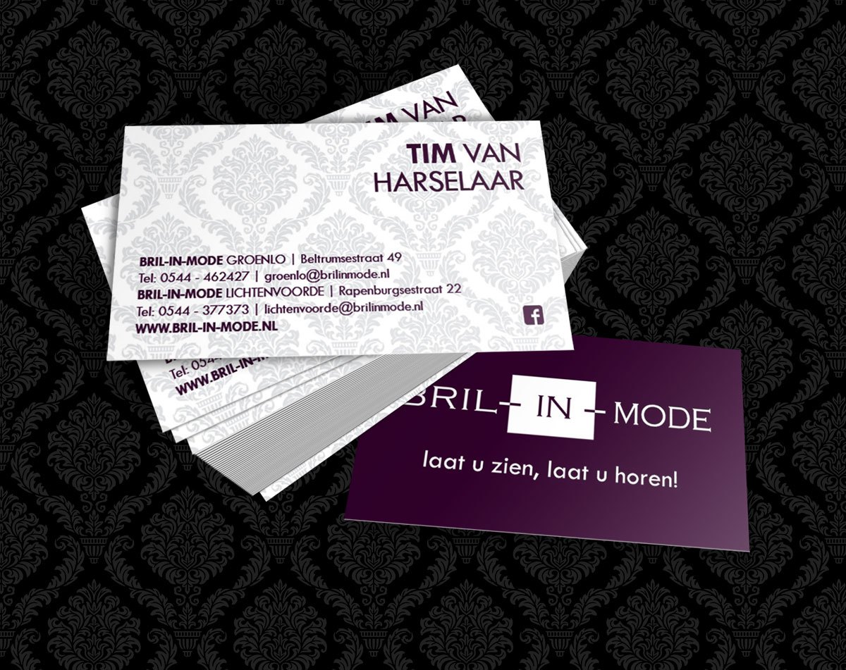 Veel items die dagelijks gebruikt worden bij Bril-in-Mode zijn door lekker in vorm voorzien van een herkenbare huisstijl. Of het nu gaat om online/offline correspondentiemateriaal, verpakkingen of visitekaartjes: elk item draagt bij aan de merkherkenning.