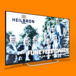 Heilbron wenst iedereen fijne feestdagen toe, onder andere vanaf de TV in de ontvangsthal van Doetinchem. Speciaal voor deze gelegenheid mochten we bij lekker in vorm een zomerbeeld van alle directeuren voorzien van een winterse uitstraling.