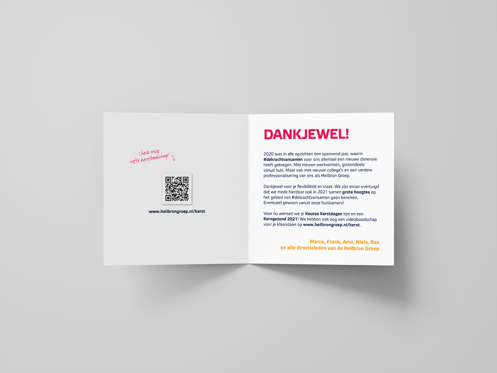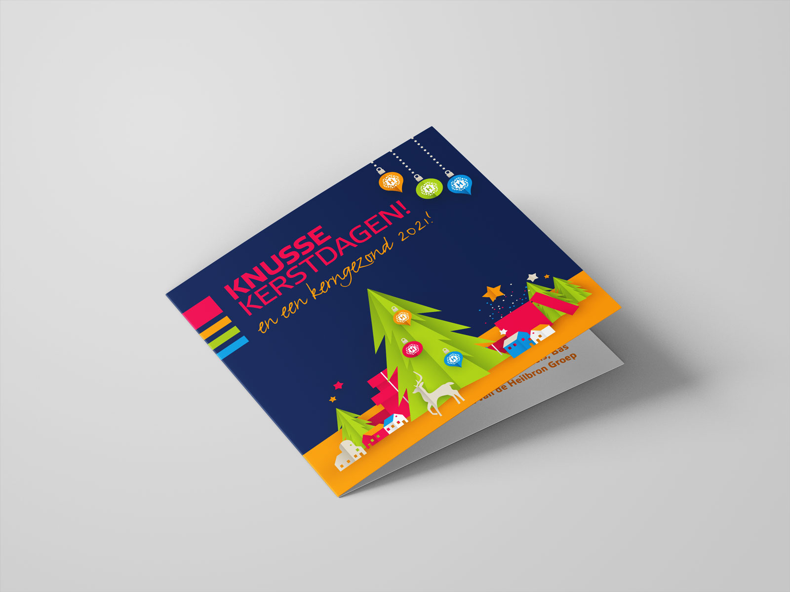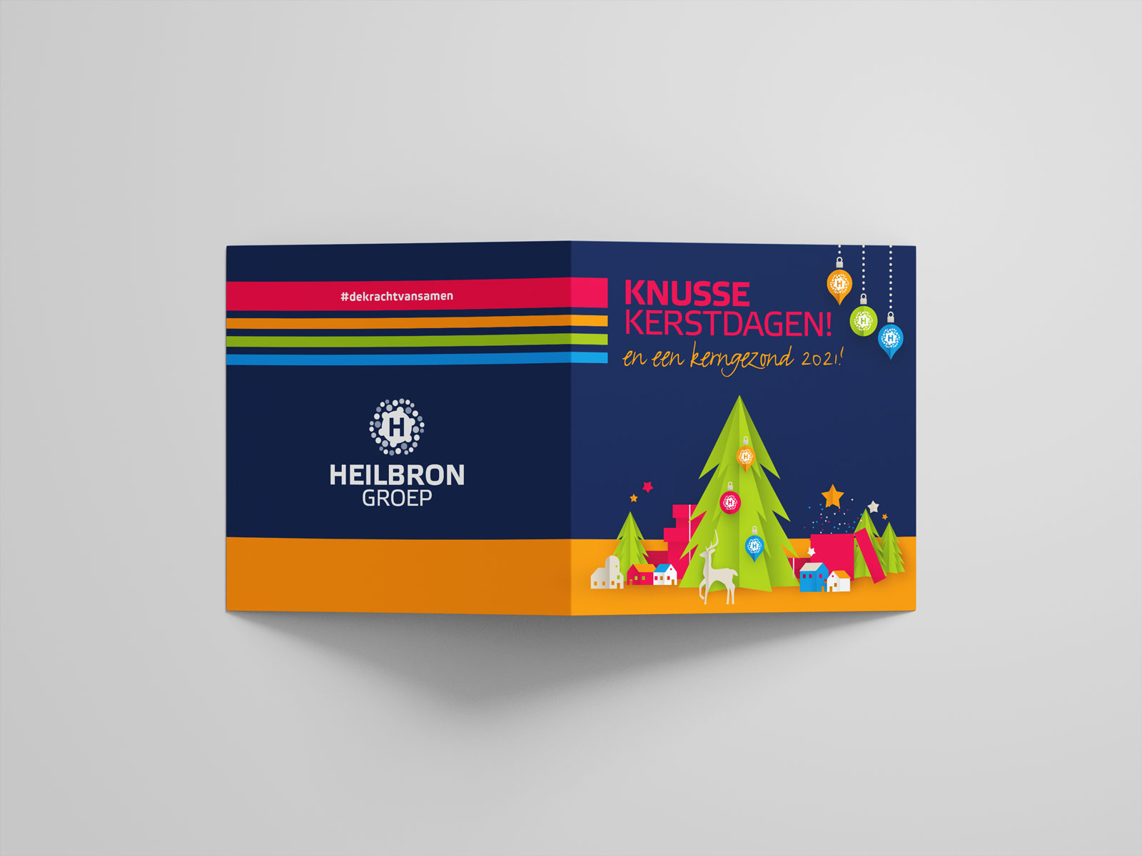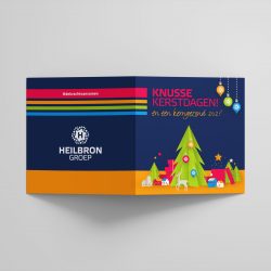 portfolio kerstkaart De Heilbron Groep wenst al haar medewerkers knusse kerstdagen toe. Bij lekker in vorm mochten we een sprankelende kerstkaart vormgeven op ice silver metallic papier, als begeleidend schrijven bij het kerstpakket. kerstkaart kerstkaart buitenzijde kerstkaart binnenzijde