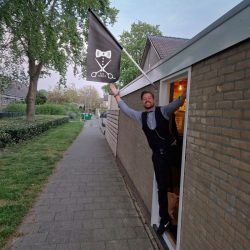 bas blij met zijn kioskvlag