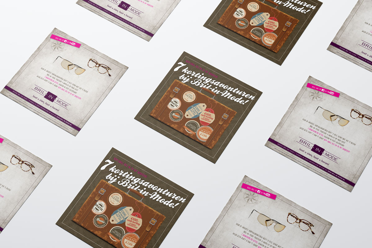 Voor de grootste kortingsavonturen hoef je deze zomer niet ver te reizen. Bril-in-mode trakteer namelijk op maar liefst 7 avontuurlijke acties, gewoon in Oost-gelderland! De campagne wordt uitgebreid onder de aandacht gebracht middels een direct mailing (presale) naar vaste klanten, huis-aan-huis flyers en diverse items in en rondom de winkel en online.