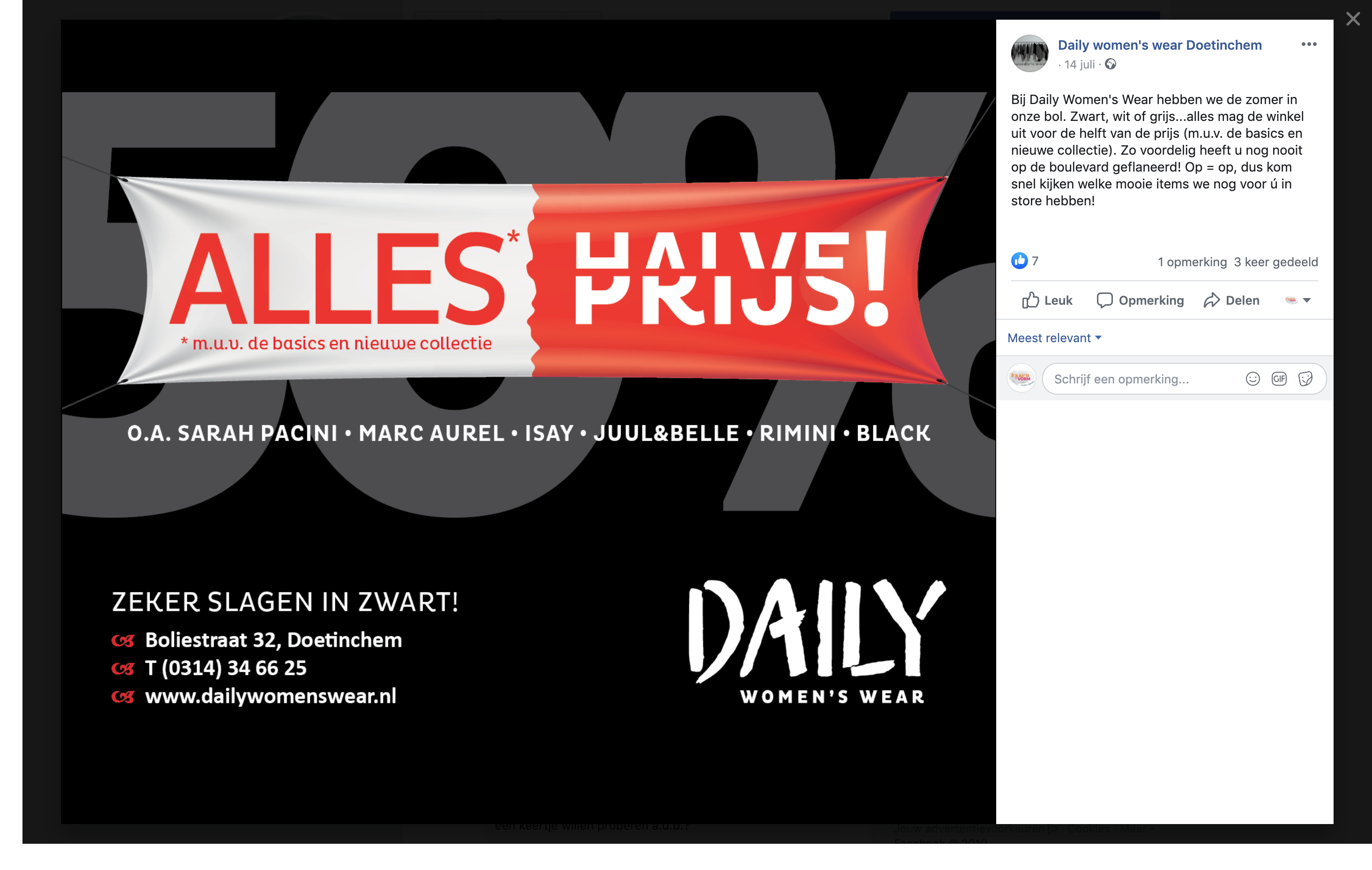 Daarnaast verscheen er een advertentie op social media en in Doetinchems Vizier / Vizier op Bronckhorst. De Persgroep plaatste deze vervolgens door als Xtra Social* advertentie op gelderlander.nl, uitsluitend zichtbaar voor vrouwen in de doelgroep.