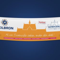 Heilbron Wehl en Kemperman Verzekeringen zitten samen in één pand en slaan de handen ineen om lokale evenementen te sponsoren, zoals het Dorpsfeest en de Wehleriade. Bij lekker in vorm gebruikten we de gemeenschappelijke vestigingsplek – het oude gemeentehuis van Wehl – als uitgangspunt voor een gecombineerd spandoek, een advertentie en een geldvangcertificaat voor een stand-actie.