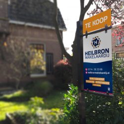 De bestaande makelaarsborden voor Heilbron Makelaardij mochten we bij lekker in vorm voorzien van een nieuw jasje, helemaal passend binnen de nieuwe huisstijl. Ook ditmaal zullen de verkoopborden weer uitgevoerd woredn in kwalitatief hoogwaardig dibond en afgewerkt met reflecterende folie voor extra opvalwaarde en UV-werend laminaat voor een lange levensduur. Het verkoopbord bestaat uit een vast onderbord en wisselbaar bovenbord om de actuele status zoals ’te koop’, ’te huur’ of ‘verkocht’ aan te geven.