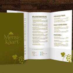 Bij Dijkman Delicatessen kun je niet alleen lekker inkopen doen, maar voortaan ook lekker ter plekke genieten van veel smaakvolle gerechten en dranken. lekker in vorm mocht het drieluik-menu ontwerpen met daarin onder andere duidelijk aangegeven allergie indicatoren. Het eindontwerp werd mooi mat afgelamineerd om vlekken tegen te gaan.