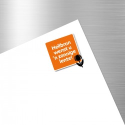 Heilbron heeft de mogelijkheid om op haar briefpapier en in haar e-mailhandtekening een maandelijks wisselende boodschap te melden, gelinkt aan de actualiteit. Een kort, maar krachtig en prikkelend design. Soms in het oranje voor Heilbron zelf, soms in het rood voor haar afdeling Regiobank.