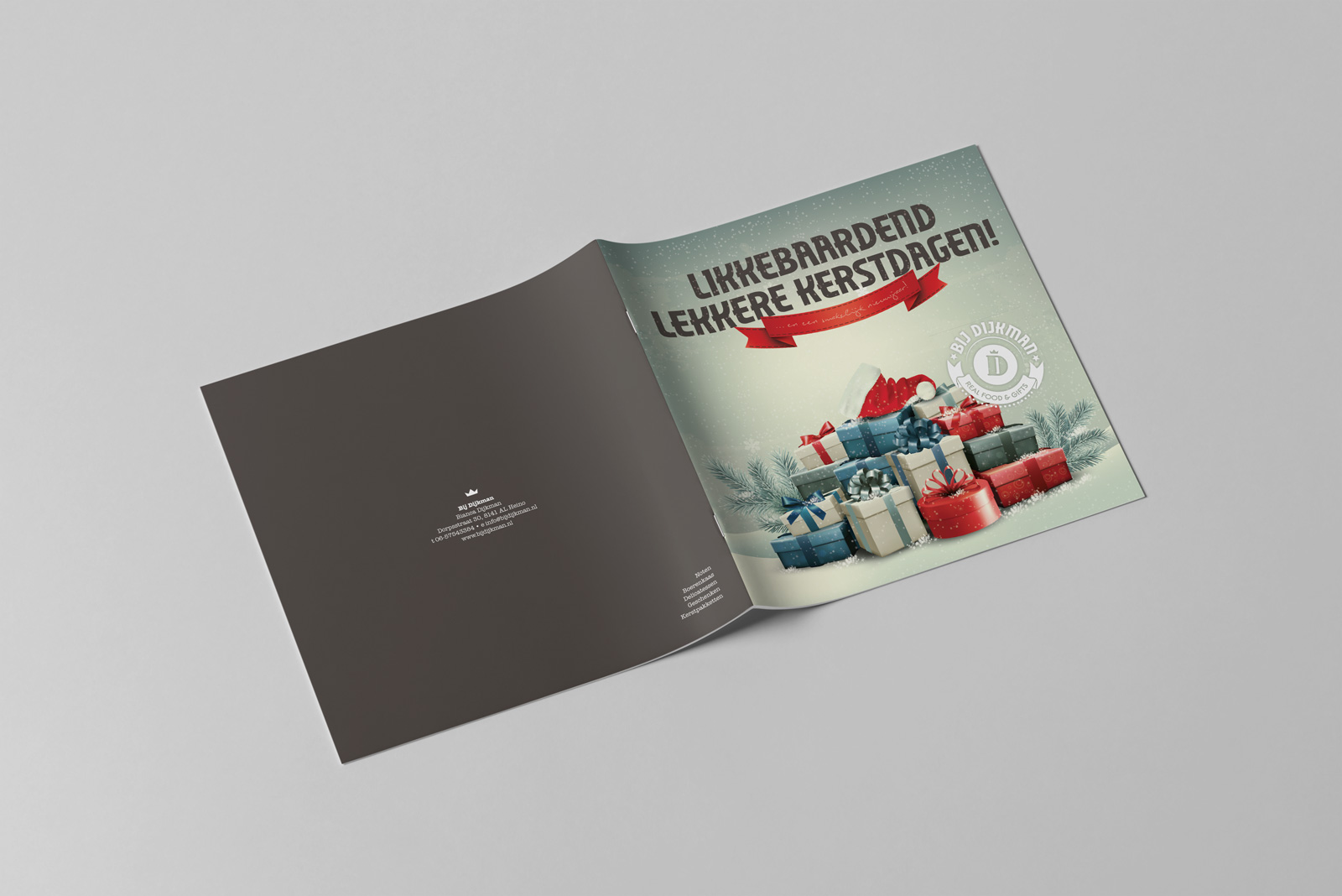 Likkebaardend lekkere kerstdagen regel je via Bij Dijkman, bijvoorbeeld via de kerstpakketten uit deze 40 pagina’s tellende kerstcatalogus. lekker in vorm mocht de beeldbewerking en de totale vormgeving ervan verzorgen. Alle pakketten zijn ook terug te vinden op een bijpassende webshop.
