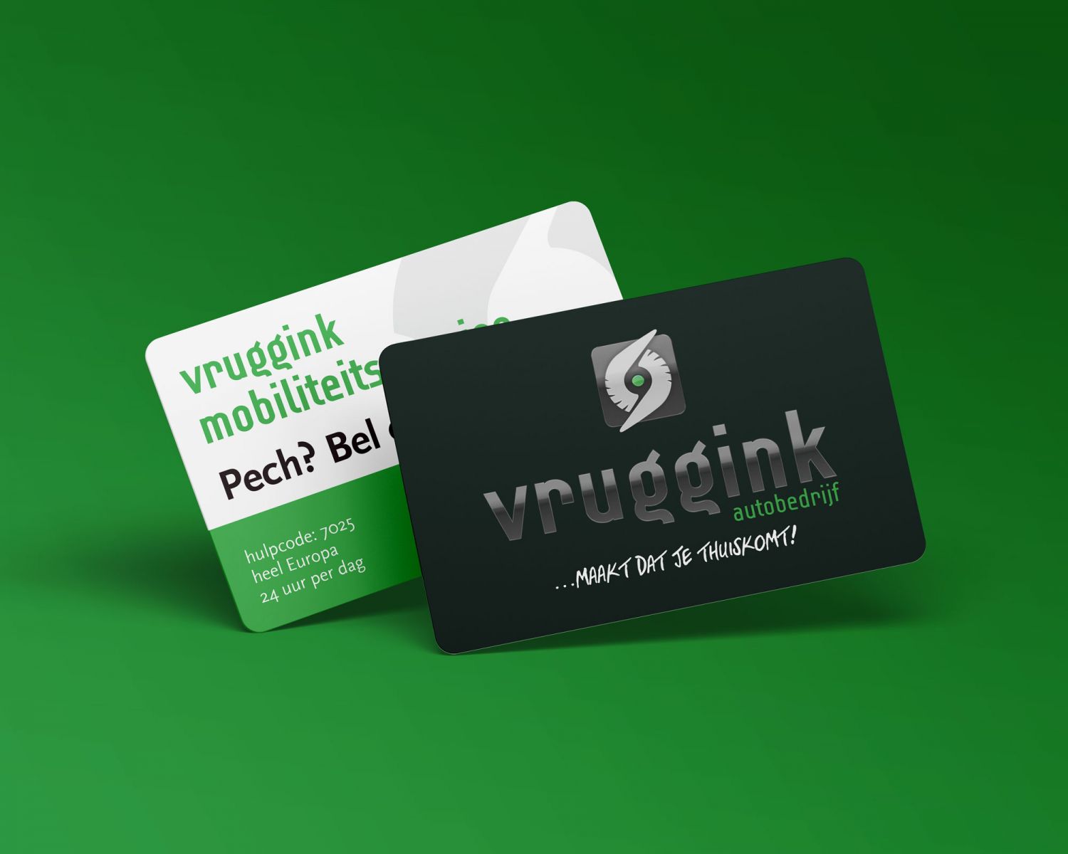 Bij het afsluiten van Vruggink’s Mobileitsservice ontvang je als klant deze informatiepas voor bij pech onderweg. Bij lekker in vorm lieten we hem uitvoeren in mooi dik en mat pvc, zodat hij langdurig meegaat in je auto of portemonnee.