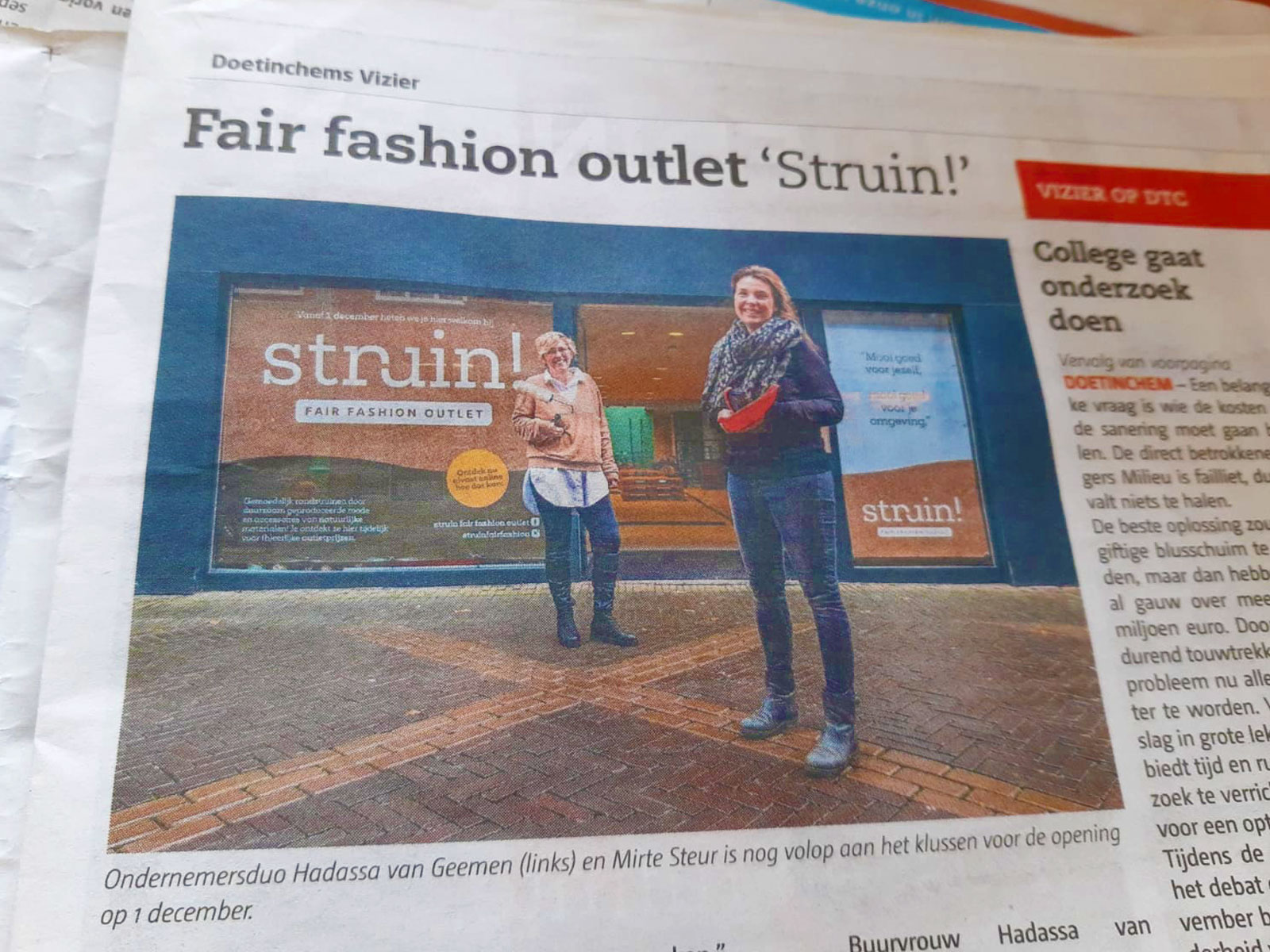 Om de opening van fair fashion outlet struin! bij het grote publiek onder de aandacht te brengen, schreven we bij lekker in vorm een persbericht op basis van de belangrijkste merkwaarden en verstuurden we deze samen met een passende foto naar diverse media. Het persbericht werd o.a. opgepakt door het Doetinchems Vizier en www.indebuurt.nl.