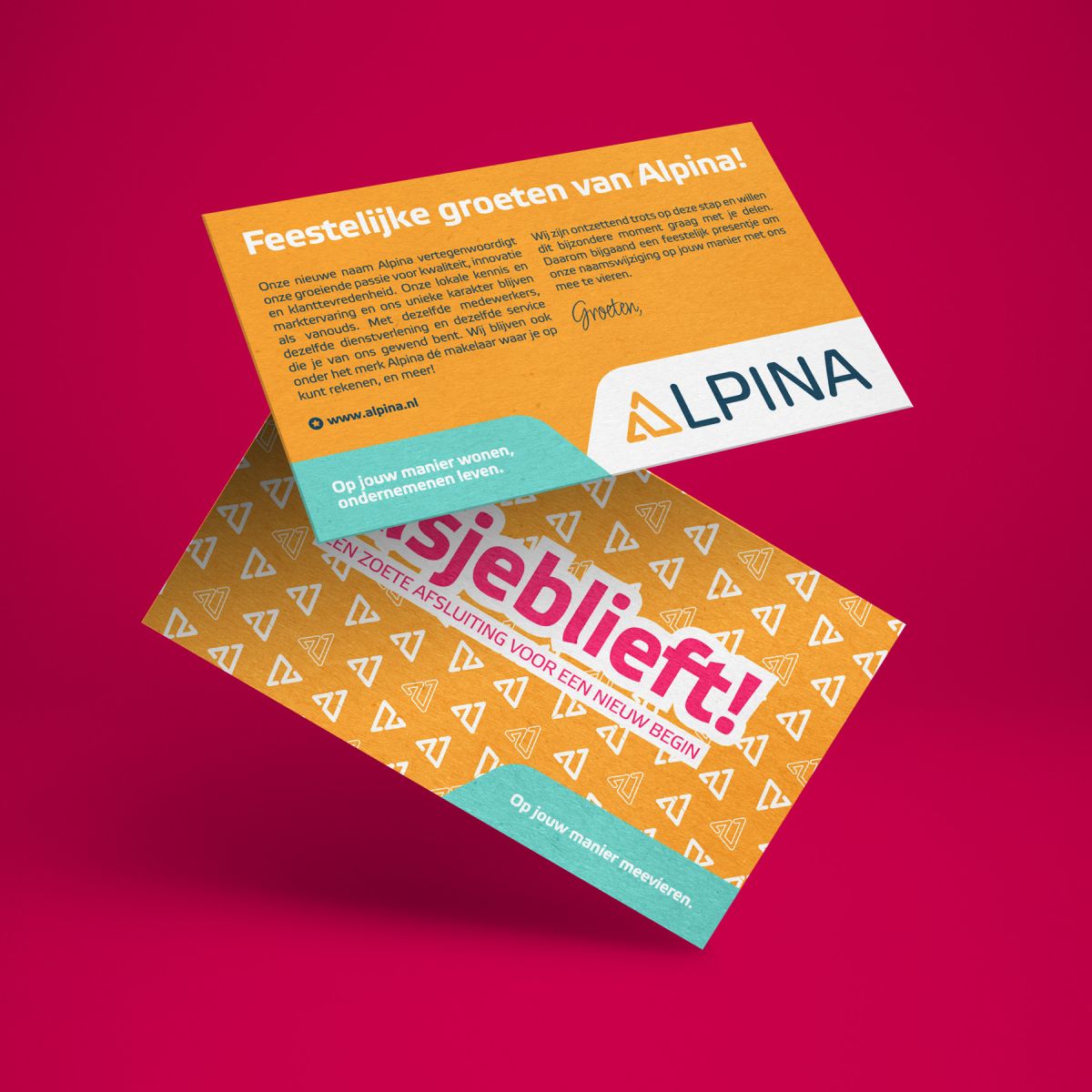 Diverse kersverse Alpina makelaars wilden hun actieve klanten graag verrassen met een smakelijke attentie van de the Brownie box om de naamwijziging samen te vieren.