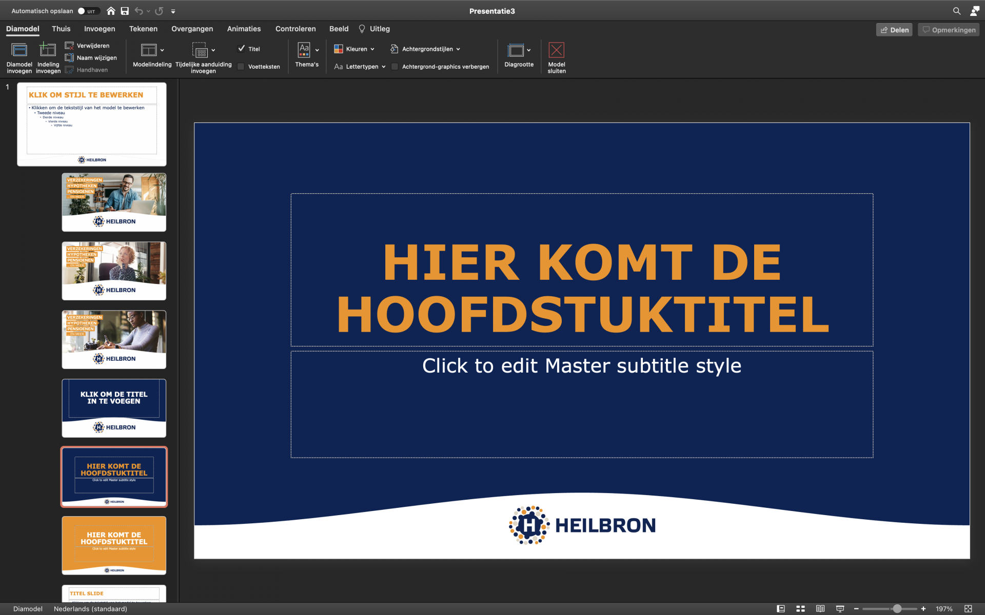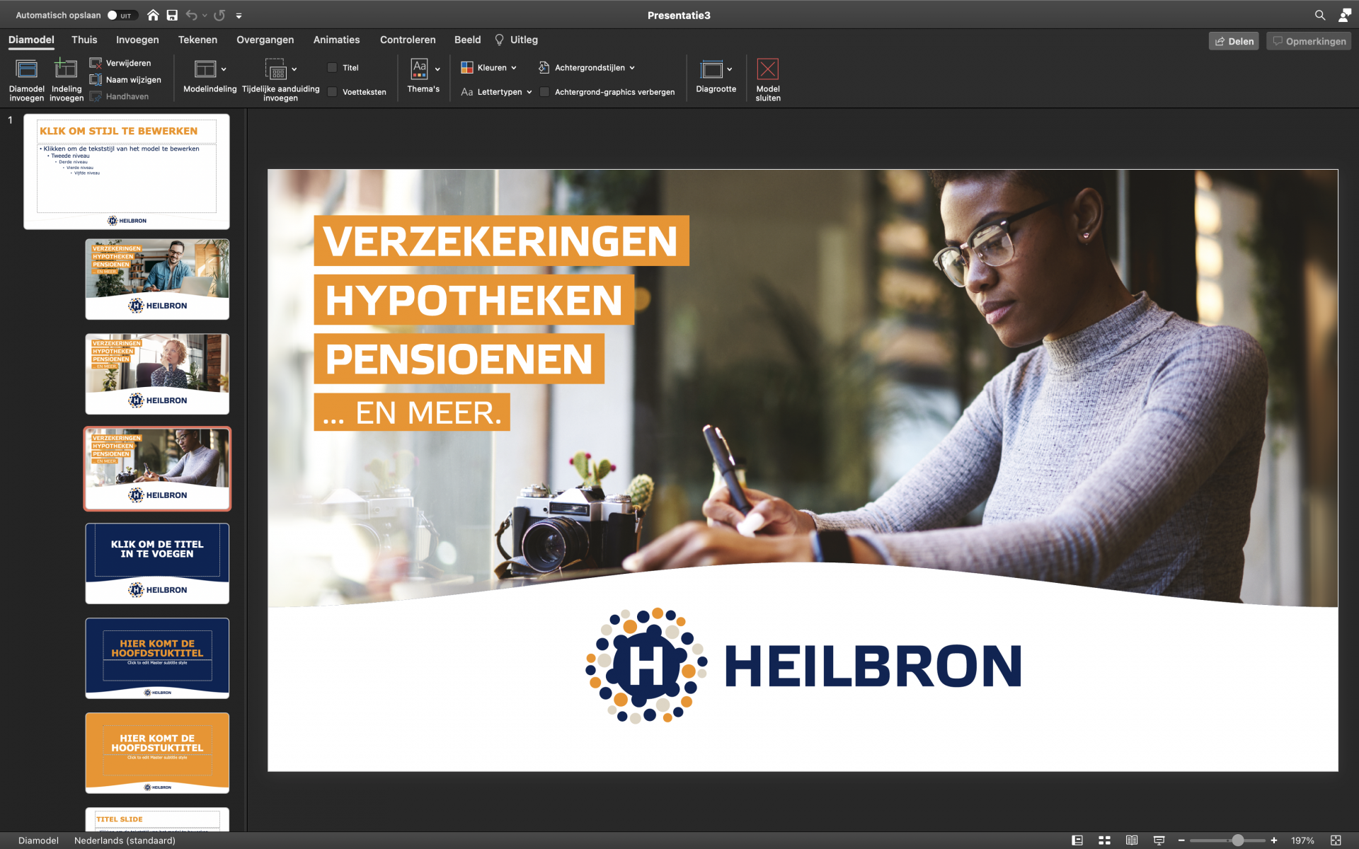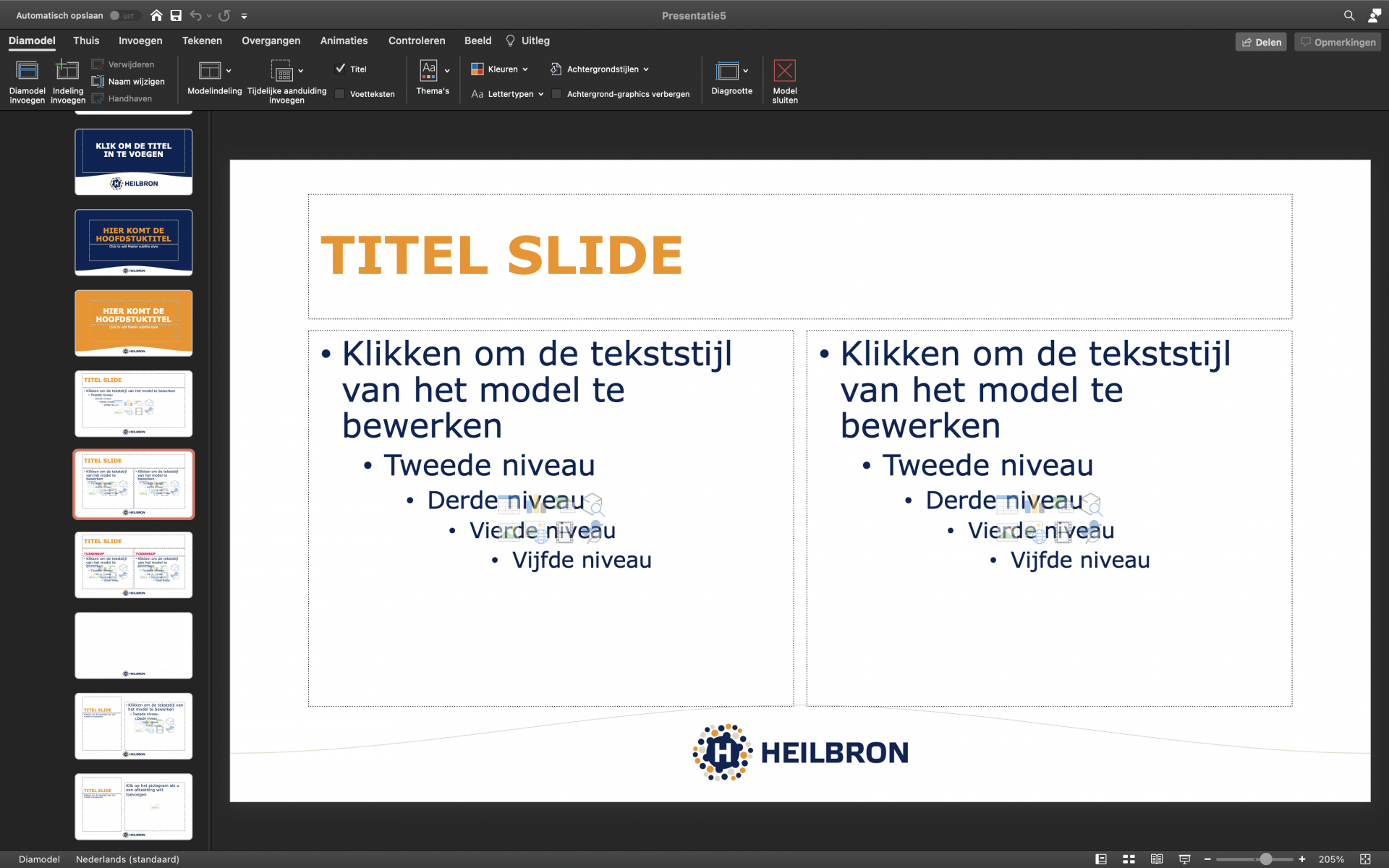 Het maken van een mooie PowerPoint presentatie binnen de huisstijl is voor iedere medewerker van Heilbron een eitje, dankzij dit handige PowerPoint sjabloon met diverse voor-ontworpen pagina’s en alineastijlen.
