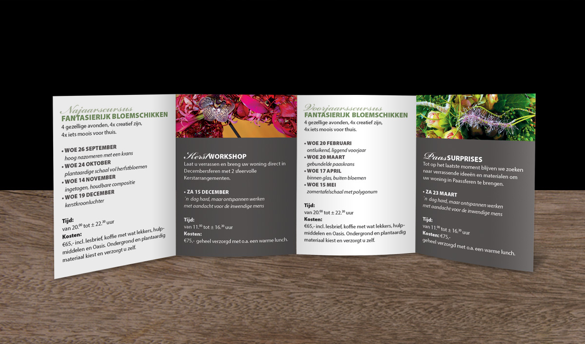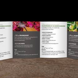 portfolio programmaboekje Diverse malen per jaar organiseert BGO132 creatieve groenworkshops. lekker in vorm zette ze overzichtelijk op rij in een handzaam vierluikje. binnenzijde buitenzijde
