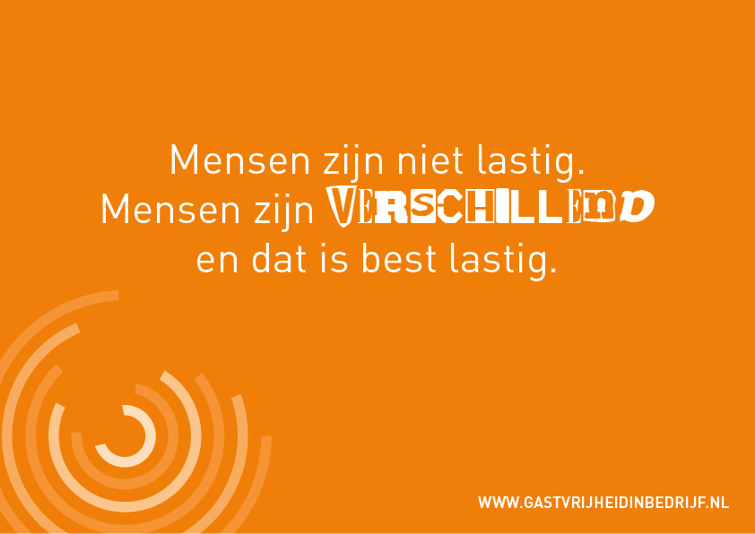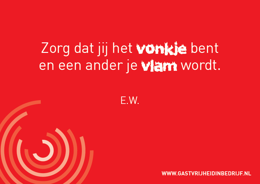 Via inspirerende quotes moedigt Gastvrijheid in Bedrijf iedereen aan om complimenteuzer en gastvrijer te zijn. De quotes verschijnen op social media en zijn als sets te bestellen in gedrukte vorm. Er verschijnen regelmatig nieuwe varianten. lekker in vorm maakt deze quotes op binnen de huisstijl en voorziet ze geregeld van simpele maar doeltreffende speelsheden.