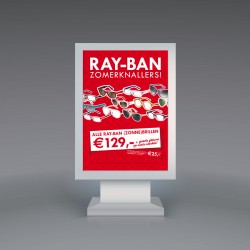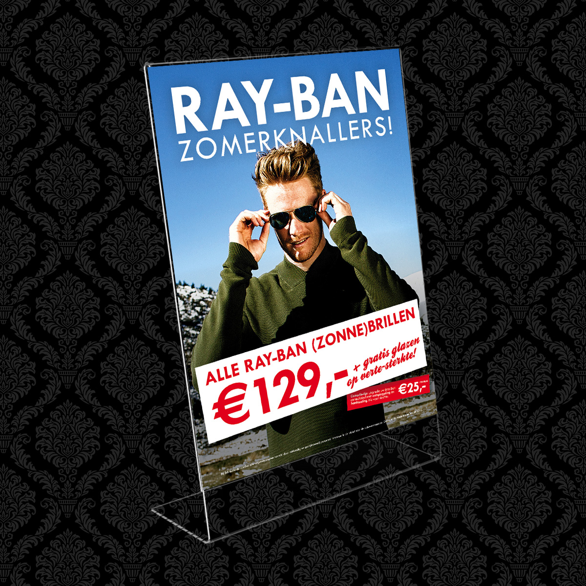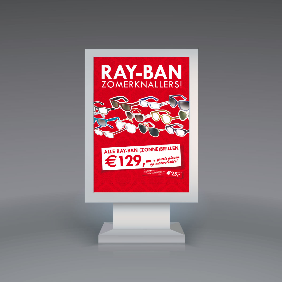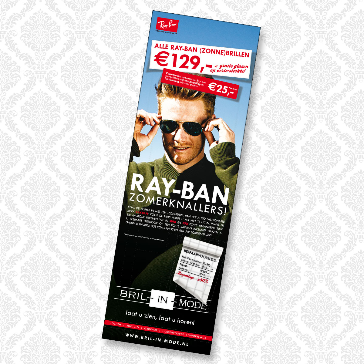 portfolio ray-ban zomerknallers Het is actie bij Bril-in-Mode: Ray-Ban Zomerknallers. De campagne wordt uitgebreid onder de aandacht gebracht via de Retina, huis-aan-huis flyers, advertenties en diverse items in en rondom de winkel. huis-aan-huis flyer advertentie instore pos materiaal stoepbord stoepbord