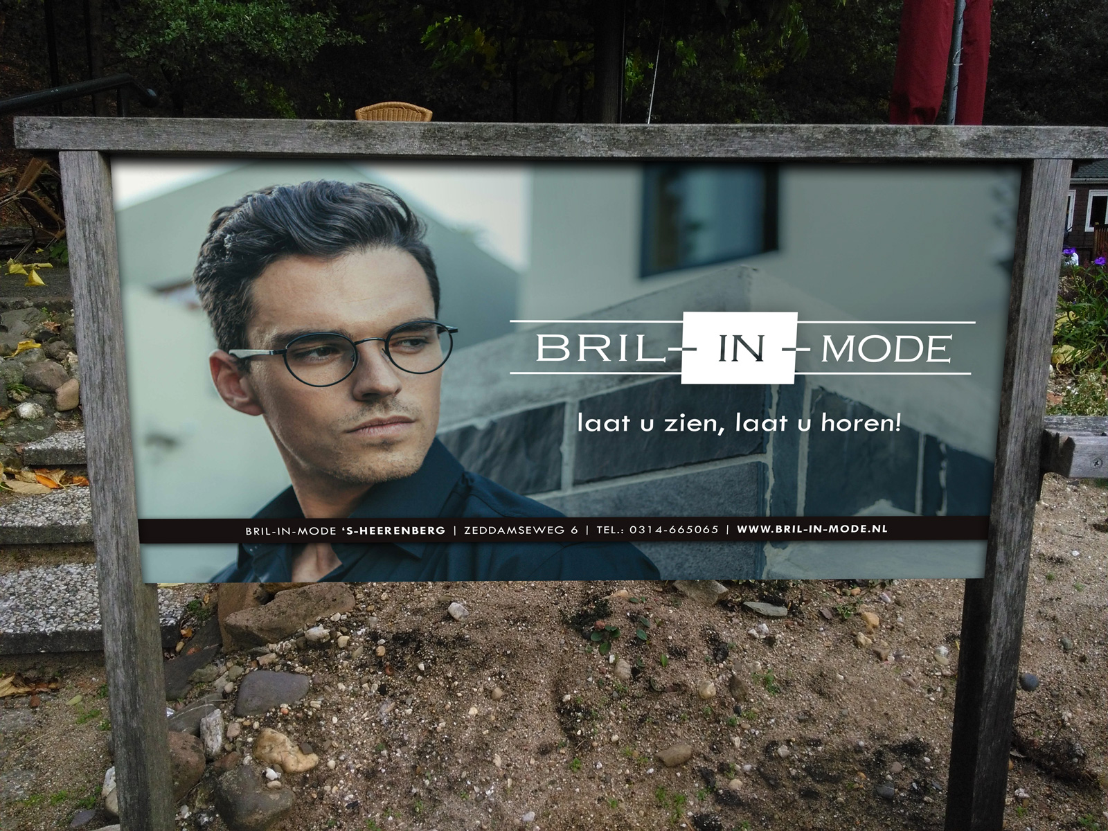 Op het speelveld van Pétanque Club Montferland in Zelhem tref je dit dubbelzijdige reclamebord van Bril-in-Mode. lekker in vorm mocht hem ontwerpen en zorgde er daarbij voor dat de beelden aan weerszijden goed op elkaar afgestemd zijn, zowel wat betreft kleurstelling als wat betreft verhouding en compositie.
