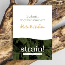 Voor struin! mochten we bij lekker in vorm een set van 3 luxe kaarten ontwerpen die als bedankje meegegeven kunnen worden aan winkelbezoekers. We lieten deze ansichtkaarten met floraal thema drukken op mooi gehamerd papier en voorzien van foliegoud accenten. Ga struinen en spaar ze alle drie!