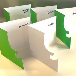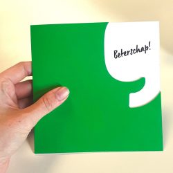 Omdat Agem betrokken is bij haar klanten, heeft het team regelmatig behoefte aan een wenskaartje voor speciale gelegenheden. Daarom mochten we bij lekker in vorm deze creatieve set wenskaarten ontwerpen in Agem huisstijl. Het bekende Aagje is uit de voorzijde gestanst en geeft daardoor alvast een doorkijkje naar een deel van de wens. De rest van de boodschap wordt er vanzelfsprekend persoonlijk met de hand bijgeschreven.