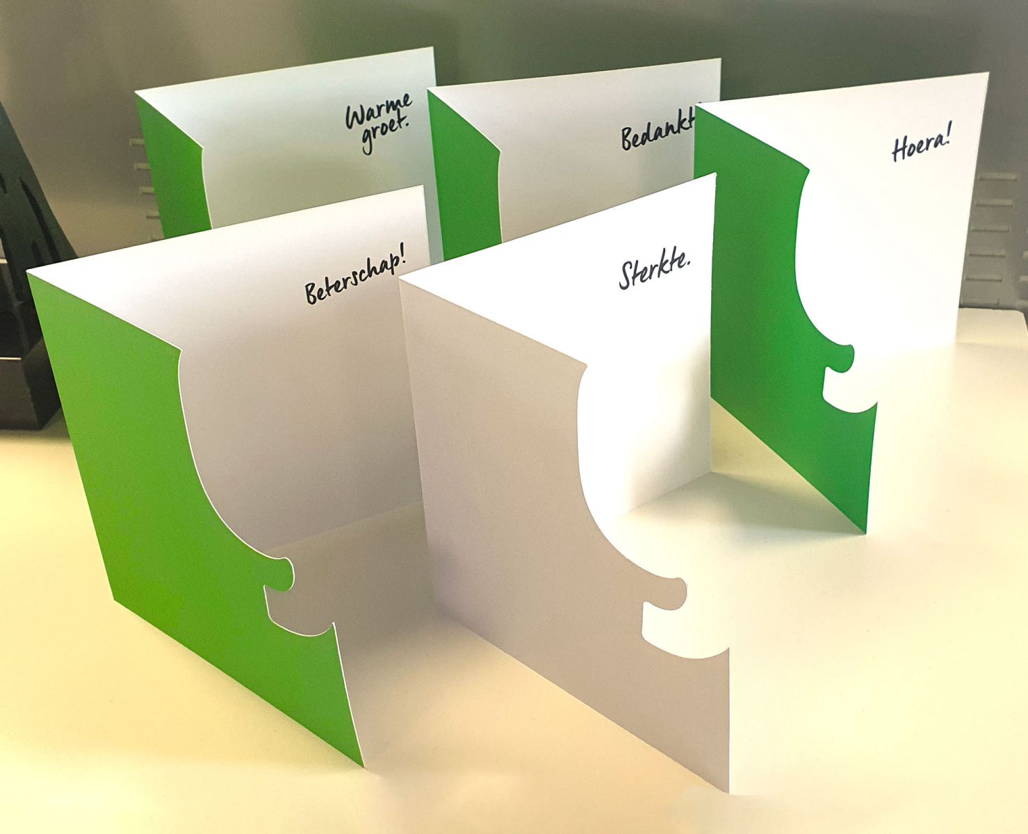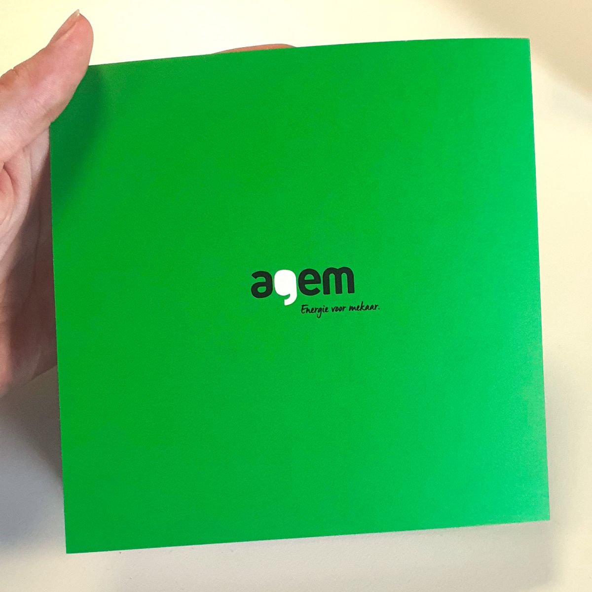 Omdat Agem betrokken is bij haar klanten, heeft het team regelmatig behoefte aan een wenskaartje voor speciale gelegenheden. Daarom mochten we bij lekker in vorm deze creatieve set wenskaarten ontwerpen in Agem huisstijl. Het bekende Aagje is uit de voorzijde gestanst en geeft daardoor alvast een doorkijkje naar een deel van de wens. De rest van de boodschap wordt er vanzelfsprekend persoonlijk met de hand bijgeschreven.