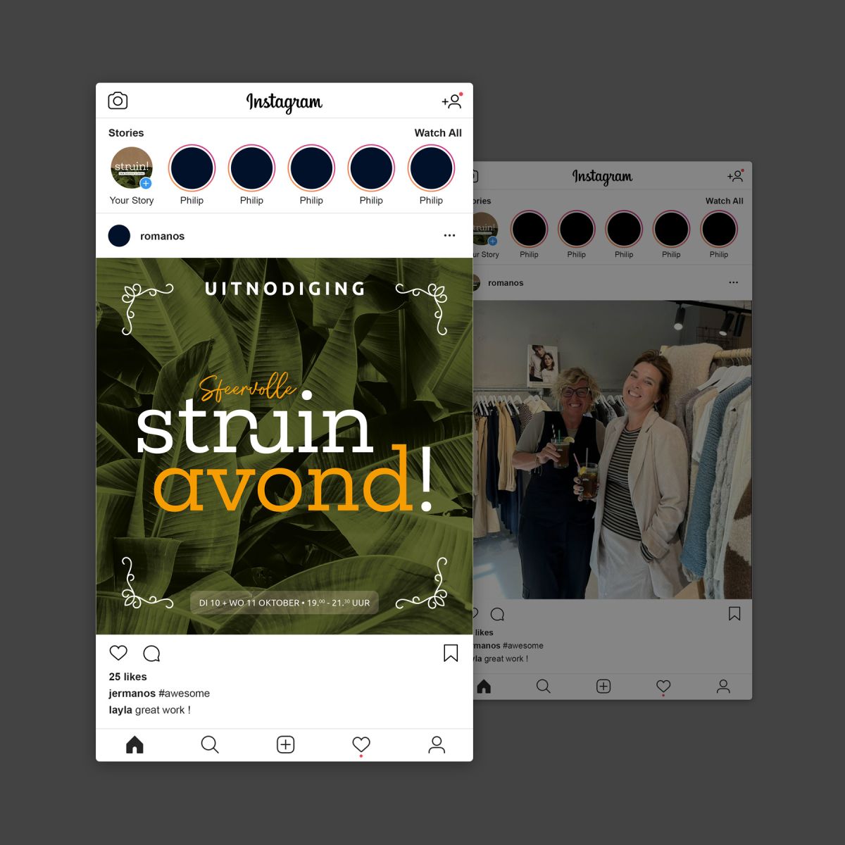 Na het grote succes van de vorige sfeervolle struinavond in mei, werd het ook dit najaar weer eens tijd om extra aangekleed te komen struinen bij Mirte en Hadassa. Op dinsdagavond 10 én woensdagavond 11 oktober kun je na aanmelding weer o.a. genieten van een modestuif onder het genot van een drankje.