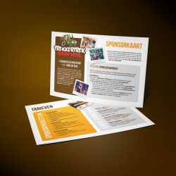 Om sponsoren te enthousiasmeren en informeren over de Trekkertrek Nieuw Wehl mochten we bij lekker in vorm de bestaande sponsorflyer in een nieuw jasje gieten. We kozen voor een liggende uitvoering en 2 versies (tarieven + specificaties) om alles overzichtelijk en wervend in beeld te brengen op een zakelijke maar toegankelijke manier.