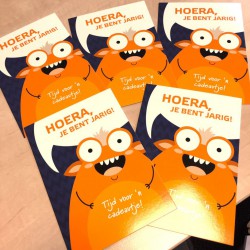 In samenwerking met haar partner RegioBank heeft Heilbron een leuke attentie voor jarige klanten tot 8 jaar: gratis een cadeautje komen uitzoeken! lekker in vorm ontwierp een monsterlijk leuke ansicht
