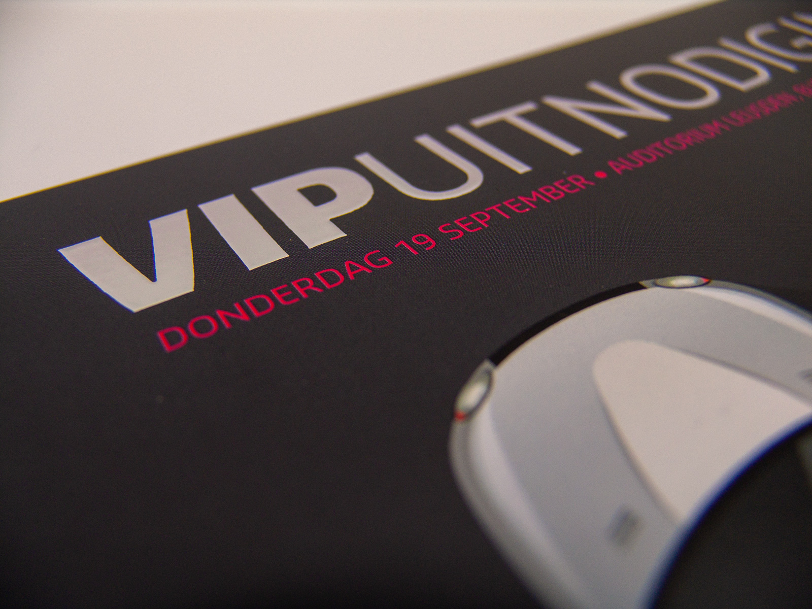 Bij lekker in vorm mochten we voor dit event een chique uitnodiging ontwerpen. We kozen voor extra dik 400 grams papier, afgewerkt met zowel een matlaminaat als zilverkleurige foliedruk. Voor de finishing touch werd elke uitnodiging gepersonaliseerd.