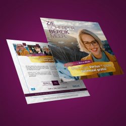 De reclamecampagne met de titel “Zie Scherper, Bereik Meer” loopt in lijn met de landelijke Essilor campagne en wordt onder de aandacht gebracht via onder andere een direct mailing naar vaste klanten en huis-aan-huis flyers met een opvallende kruisslag vouw. Deze mailingen worden ondersteund door diverse point-of-sale items in de winkel en op het web. Hierboven valt ook de bijbehorende reclamespot voor de regionale radio te beluisteren.