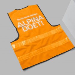 Diks Verzekeringen in IJsselstein heet voortaan Alpina. In het verlengde van de landelijke actie NLdoet vier het team haar rebranding op volledig eigen wijze onder de naam ALPINAdoet. De medewerkers dragen in de openingsweek op hun eigen manier bij aan lokaal maatschappelijke projecten. Daarvoor mochten we bij lekker in vorm dit veiligheidshesje ontwerpen. Zo kan iedereen veilig de handen uit de mouwen steken!